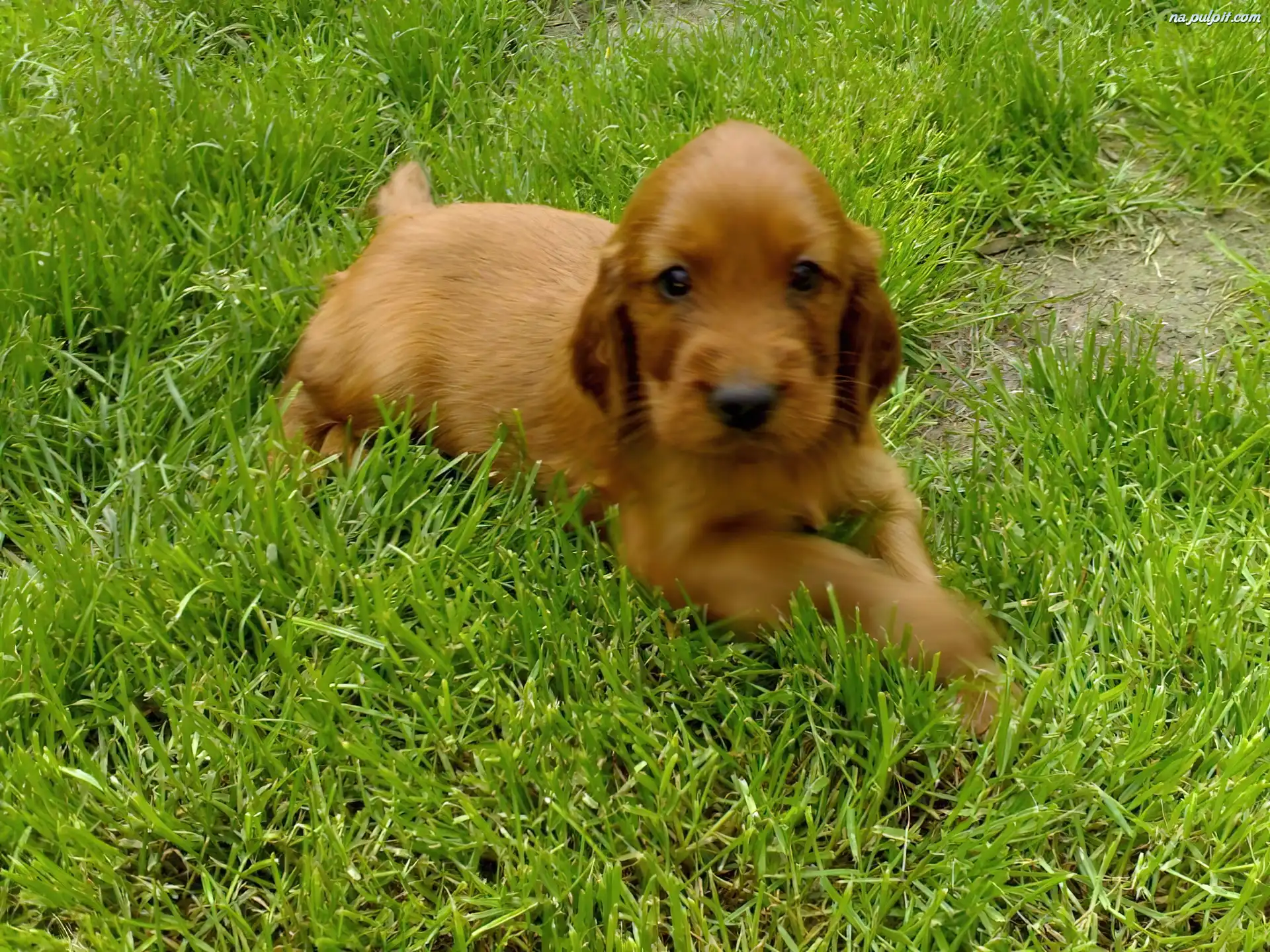 Seter irlandzki, słodki, szczeniak Na Pulpit