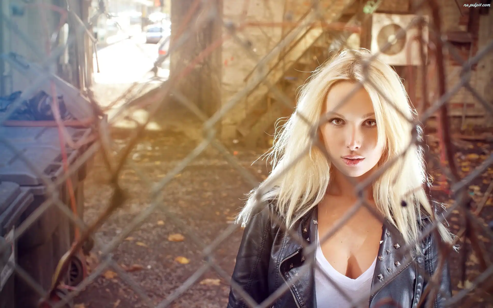 Siatka, Kurtka, Blondynka, Krata Na Pulpit