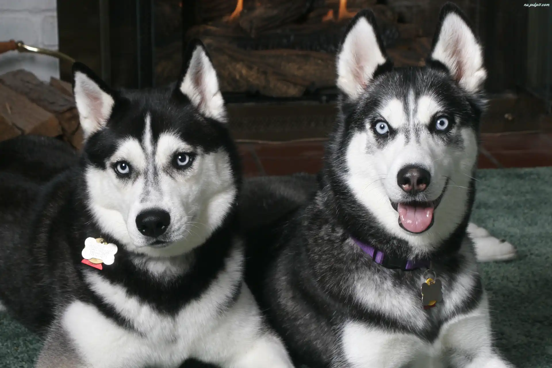 Siberian Husky, dwa, czarne Na Pulpit