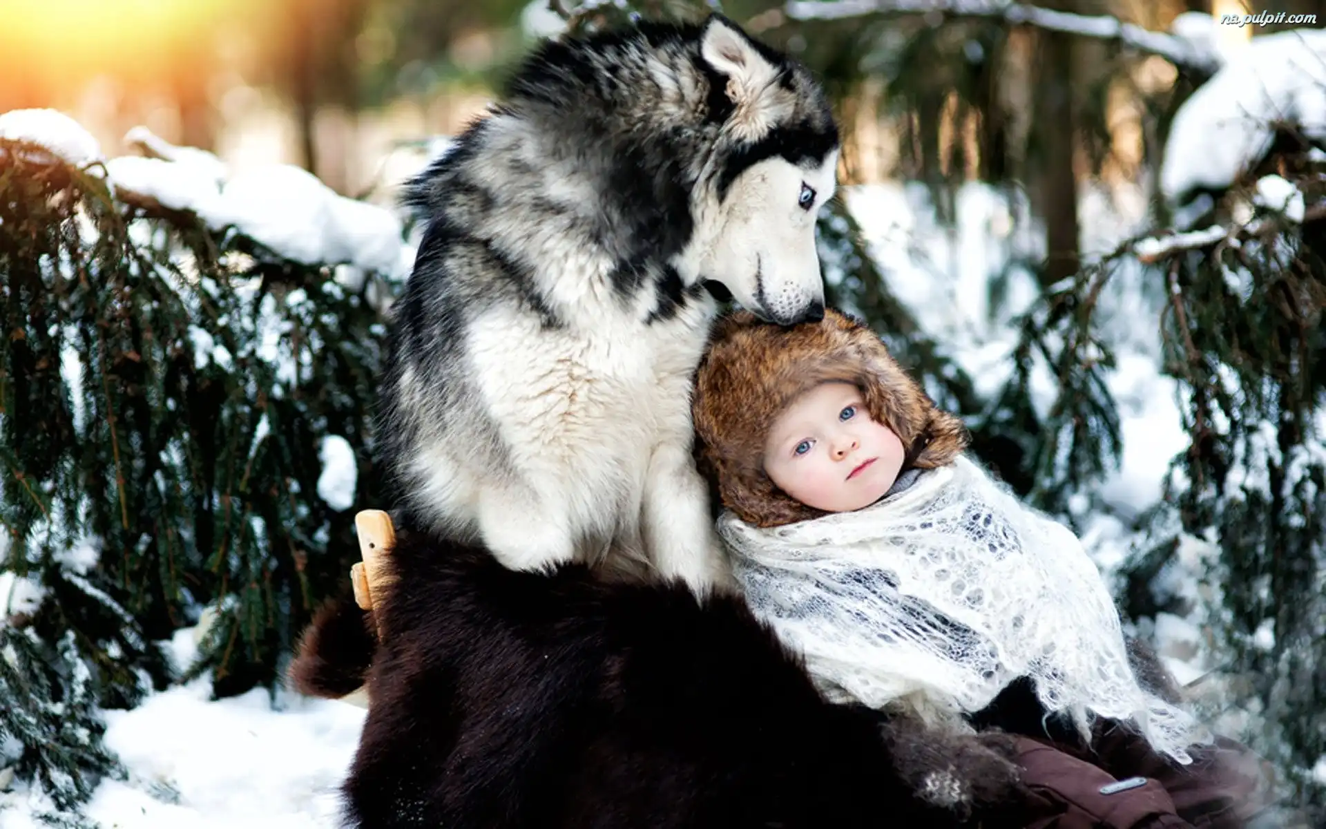 Siberian Husky, Zima, Dziecko Na Pulpit