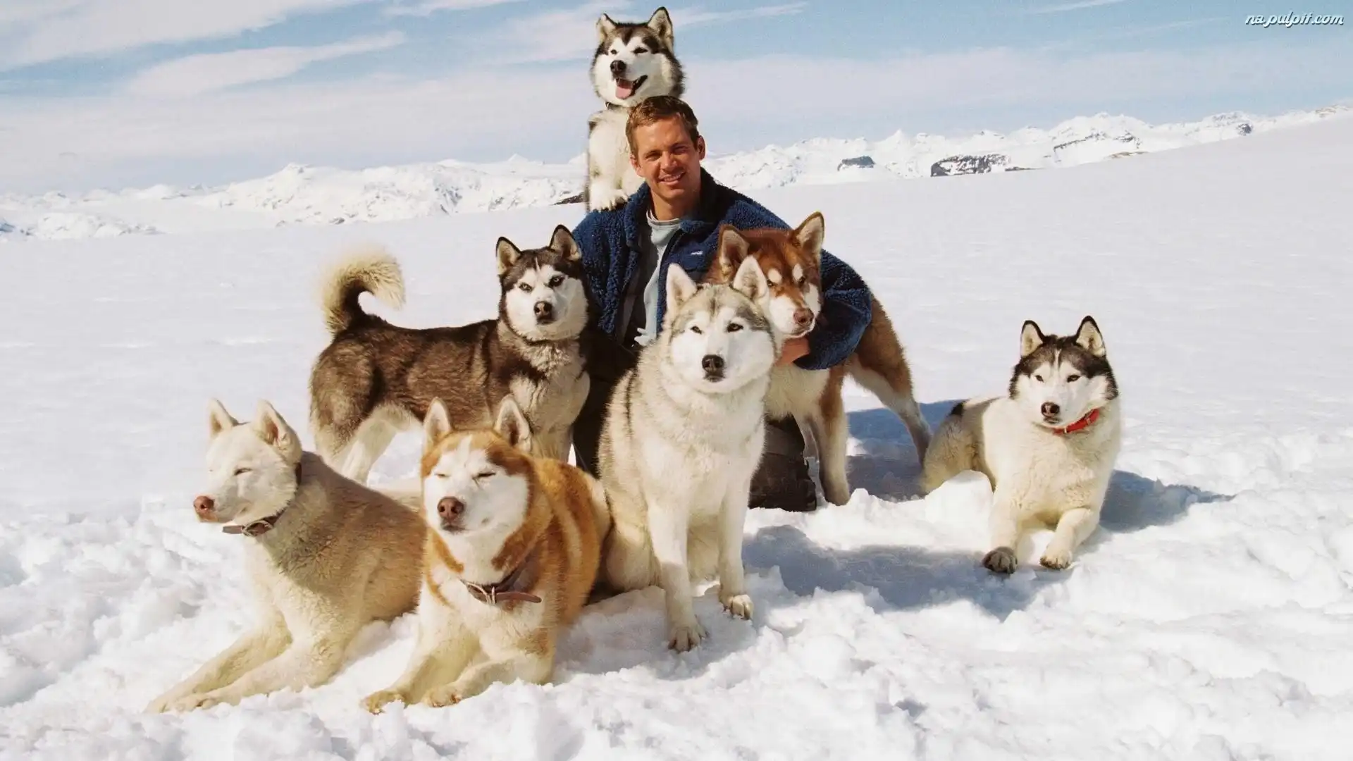 Siberian Husky, Zima, Mężczyzna Na Pulpit