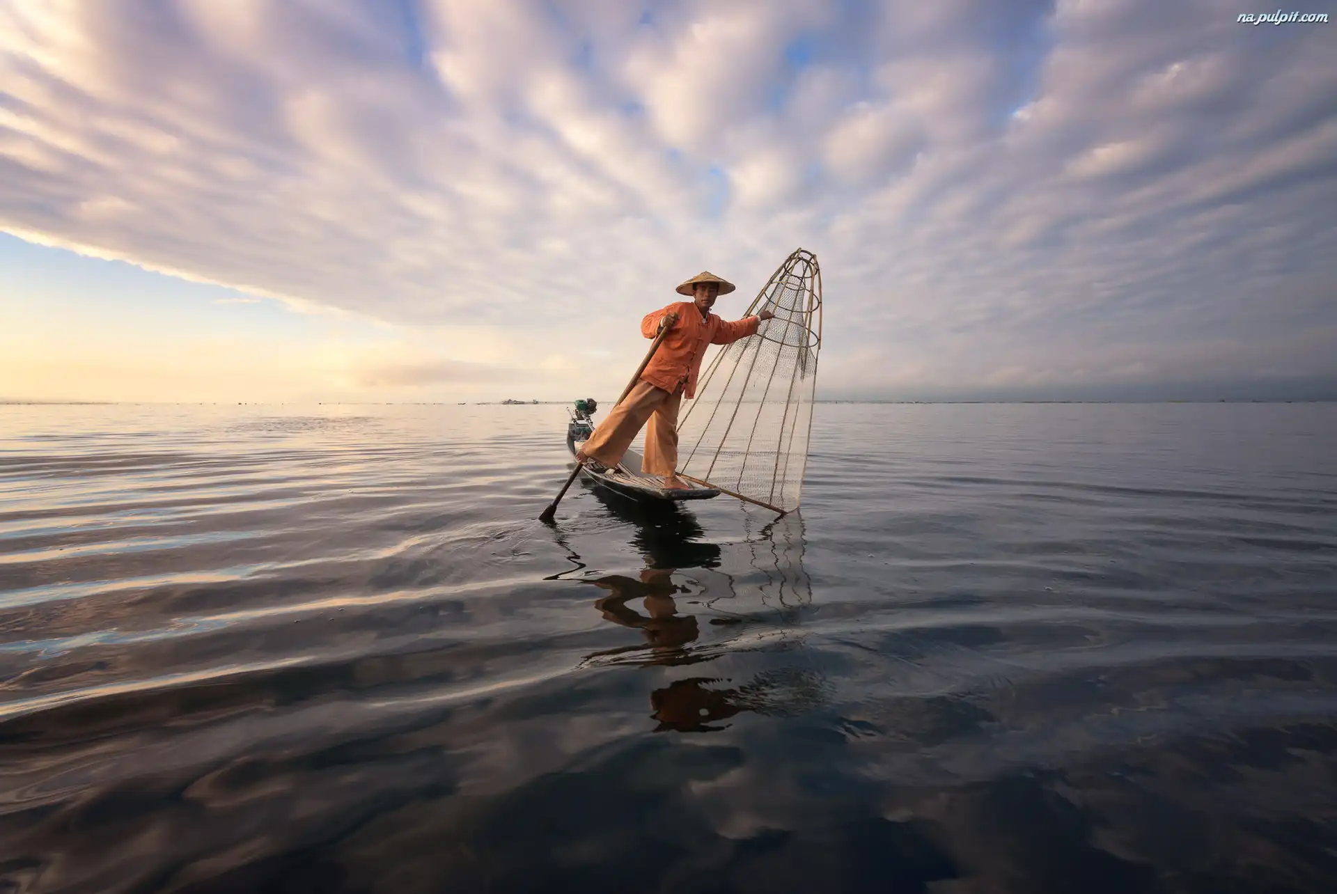 Sieć, Rybak, Morze, Łódź Na Pulpit