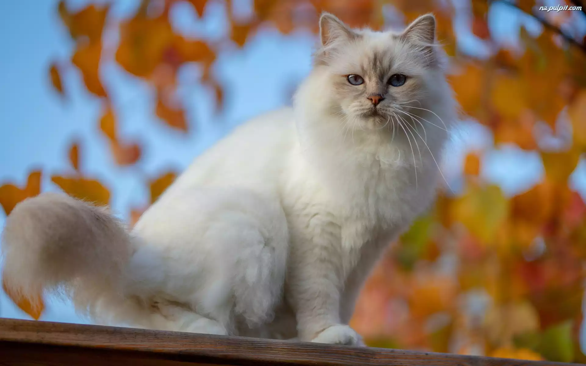 Niebieskie, Siedzący, Biały, Oczy, Kot Na Pulpit