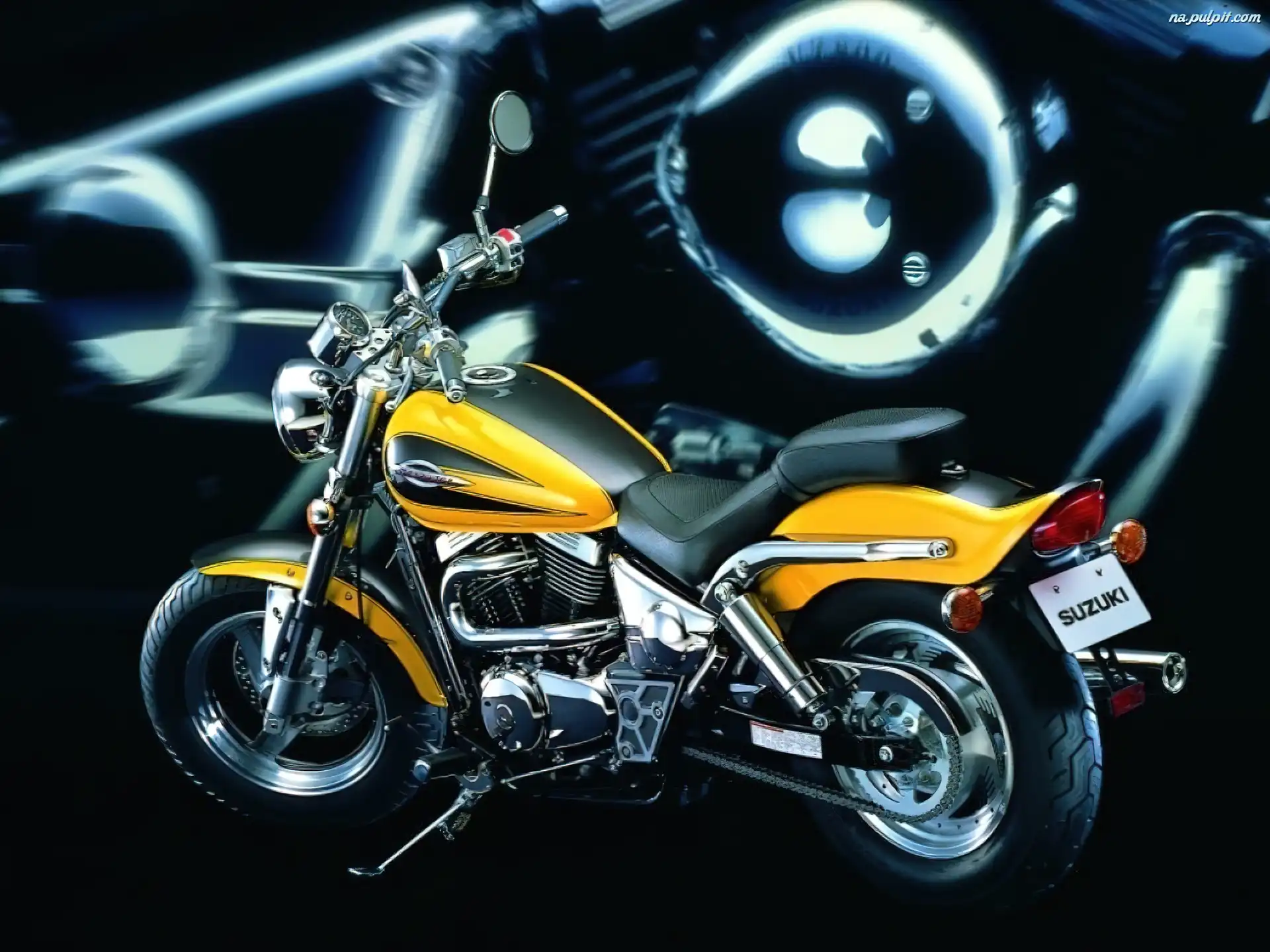 światła , żółty, kierownica, lusterka, koła, opony, tłumik , Motory Suzuki, siedzenie Na Pulpit |