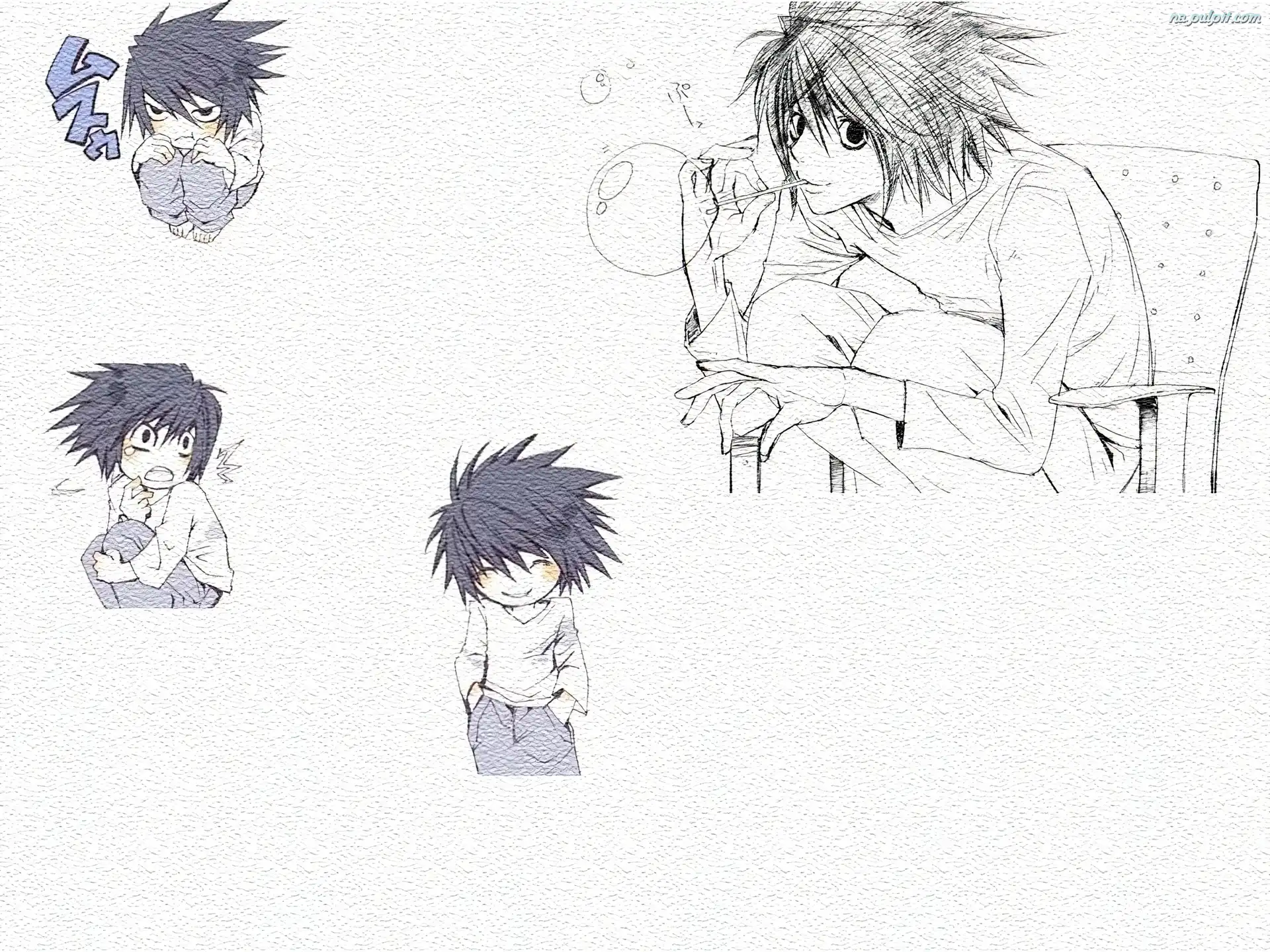 siedzi, dzieci, Death Note, bańki Na Pulpit