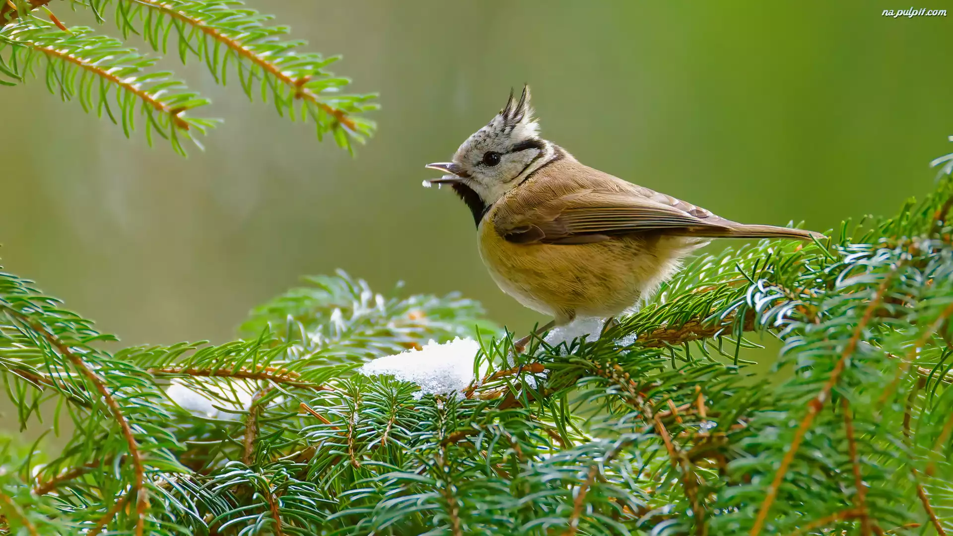 Iglasta, Czubatka europejska, Sikora czubatka, Gałązka, Ptak Na Pulpit