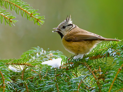 Iglasta, Czubatka europejska, Sikora czubatka, Gałązka, Ptak