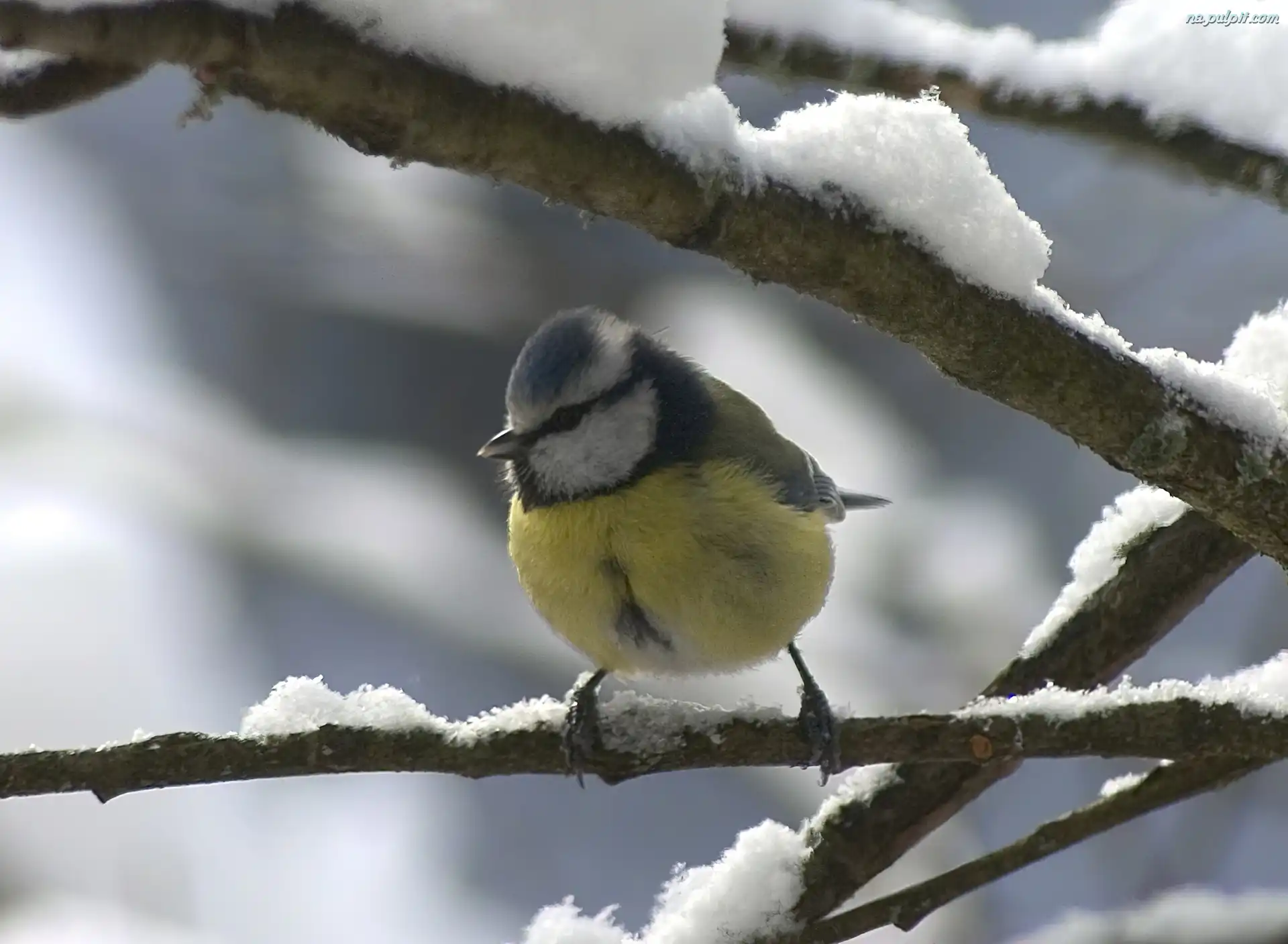 Gałązki, Sikorka, Ośnieżone Na Pulpit