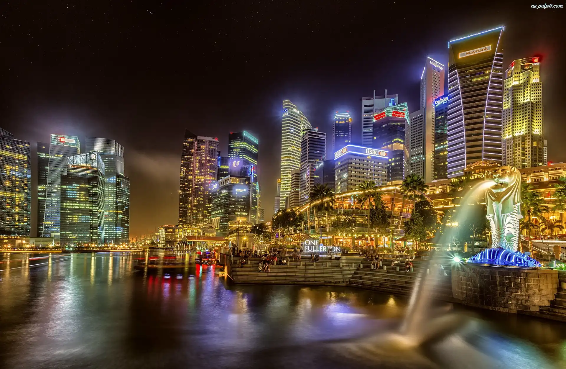 Światła, Miasto, Singapur, Noc Na Pulpit