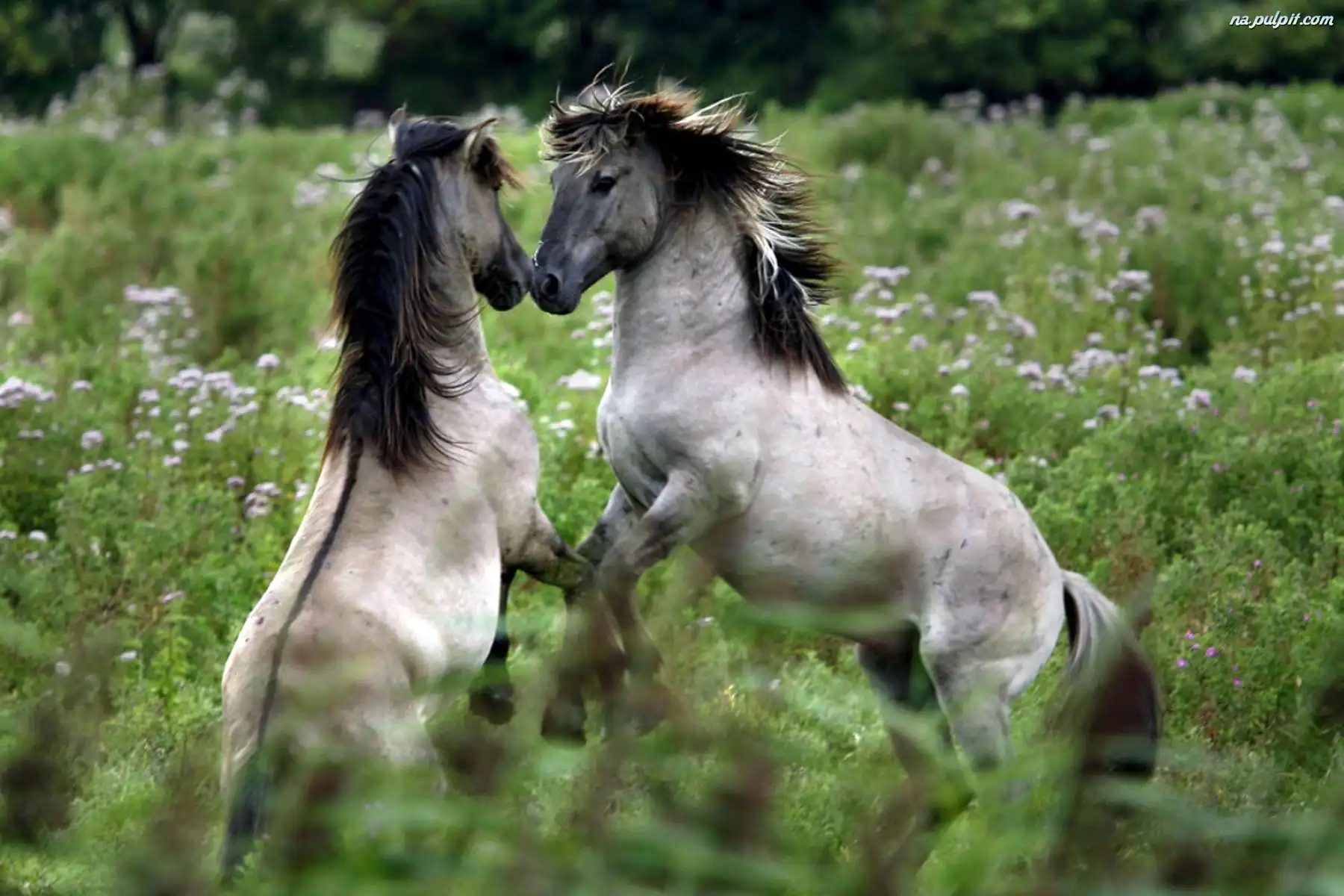 Łące, Zabawa, Konie, Siwe, Na Na Pulpit