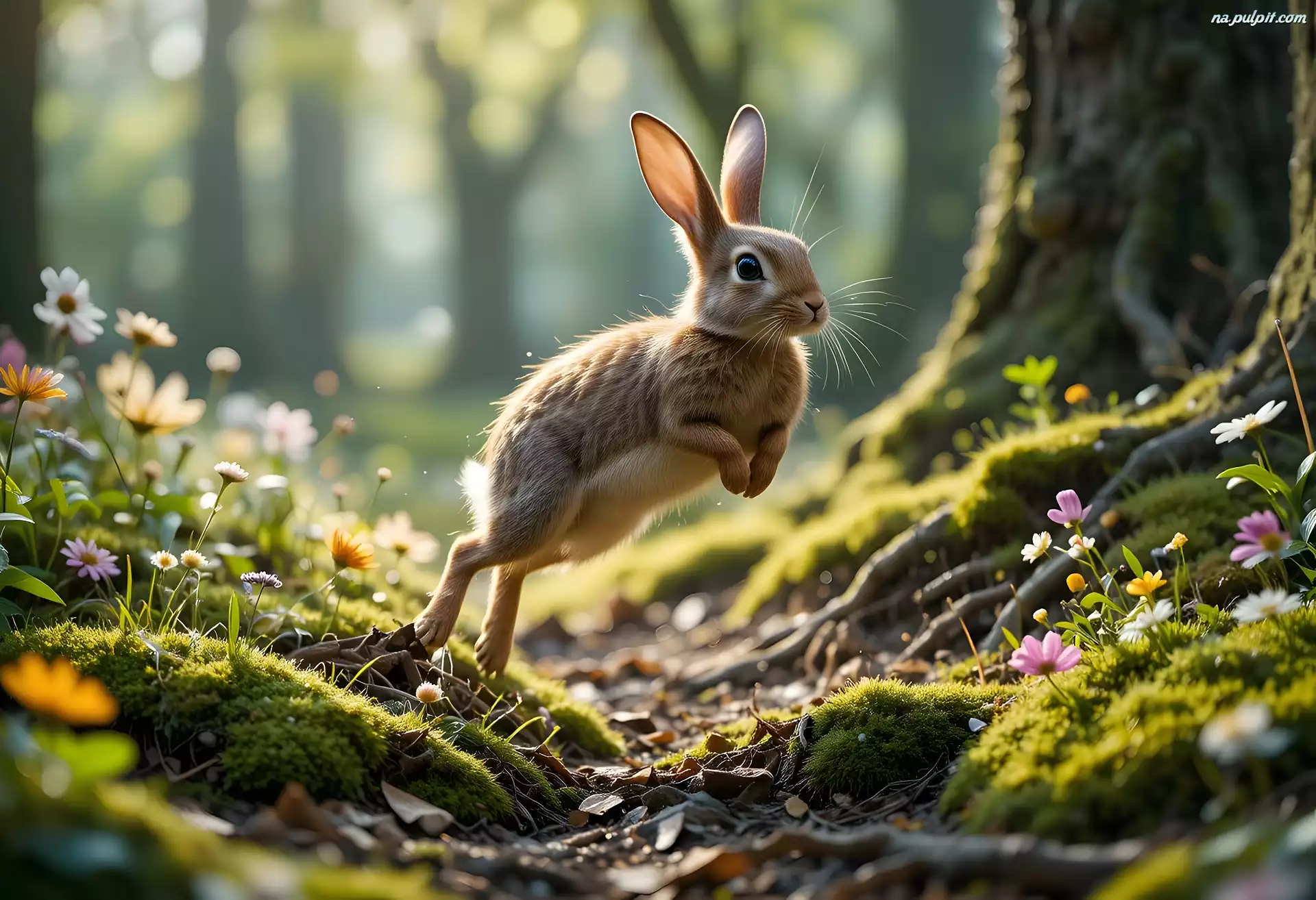 Skakanie, Ssak, Kwiatki, Natura, Królik, Skoki, Przyroda, Zwierzę, Uszy, Las Na Pulpit