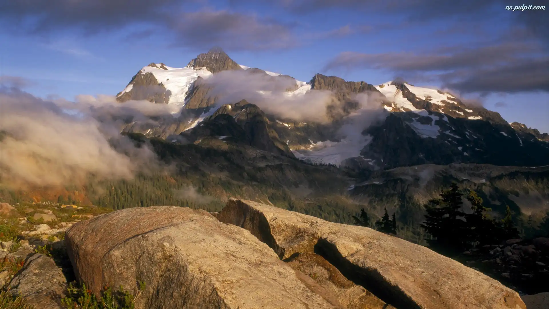 Skała, Śnieg, Wysokość, Góry, Mgła Na Pulpit