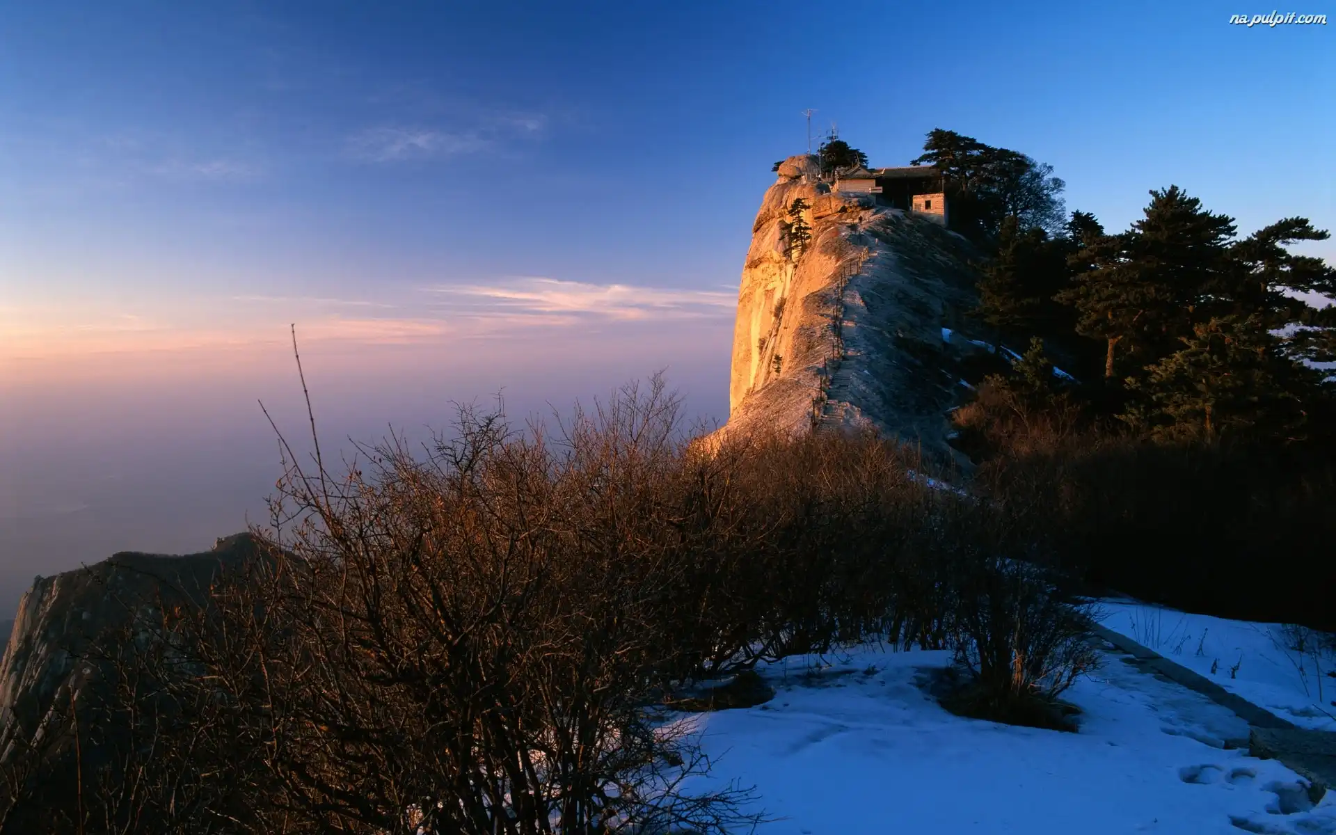Krzaki, Skała, Śnieg Na Pulpit