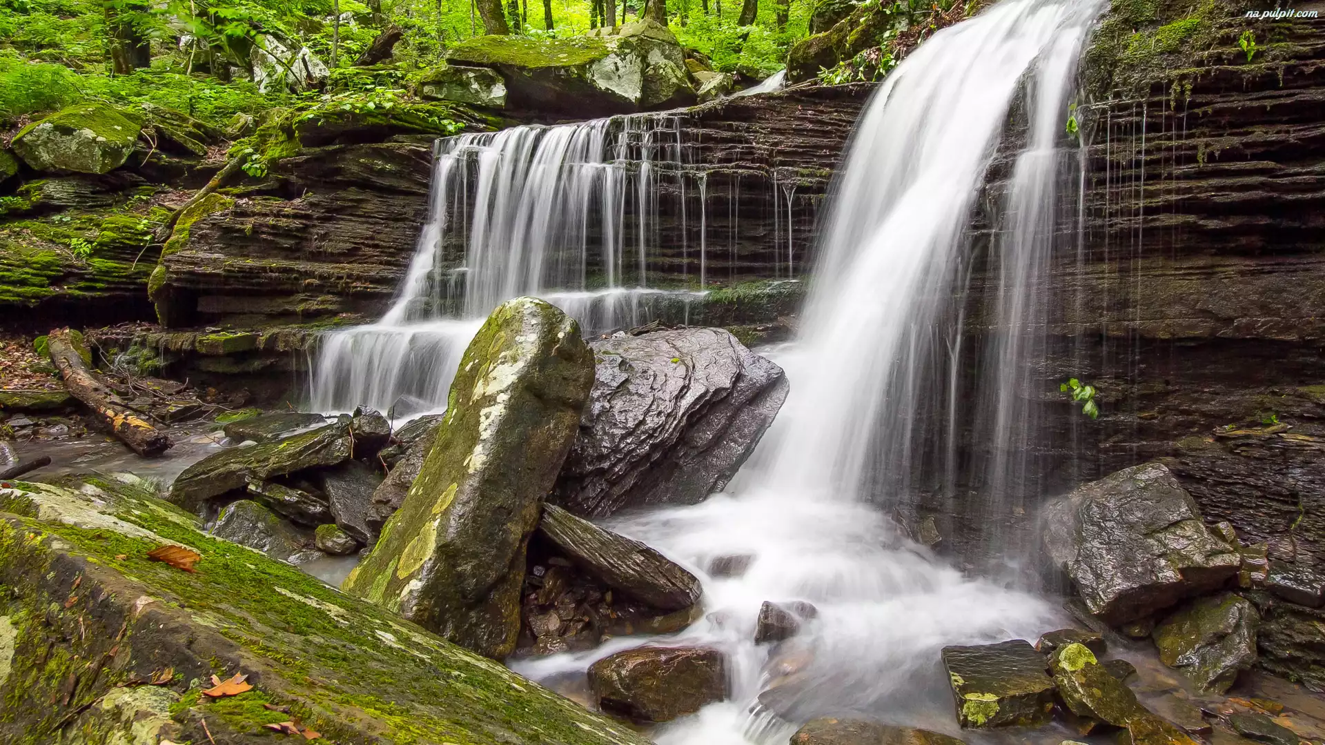 Skała, Omszałe, Wodospad, Las, Kamienie Na Pulpit