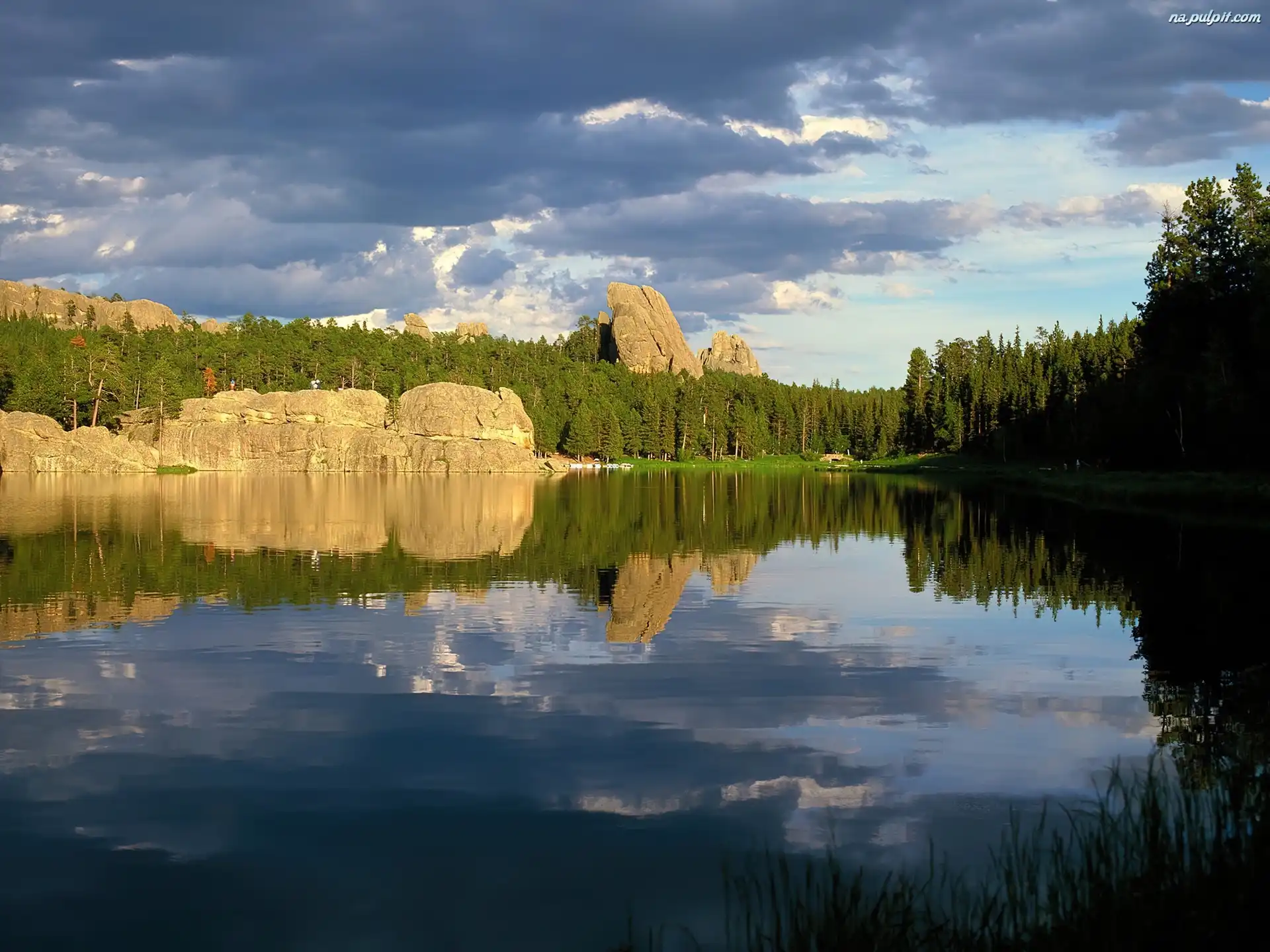 Skałki, Jezioro, Chmury, Las Na Pulpit
