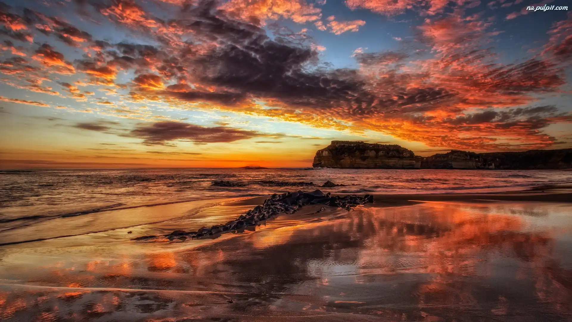 Skałki, Chmury, Słońca, Zachód, Morze Na Pulpit
