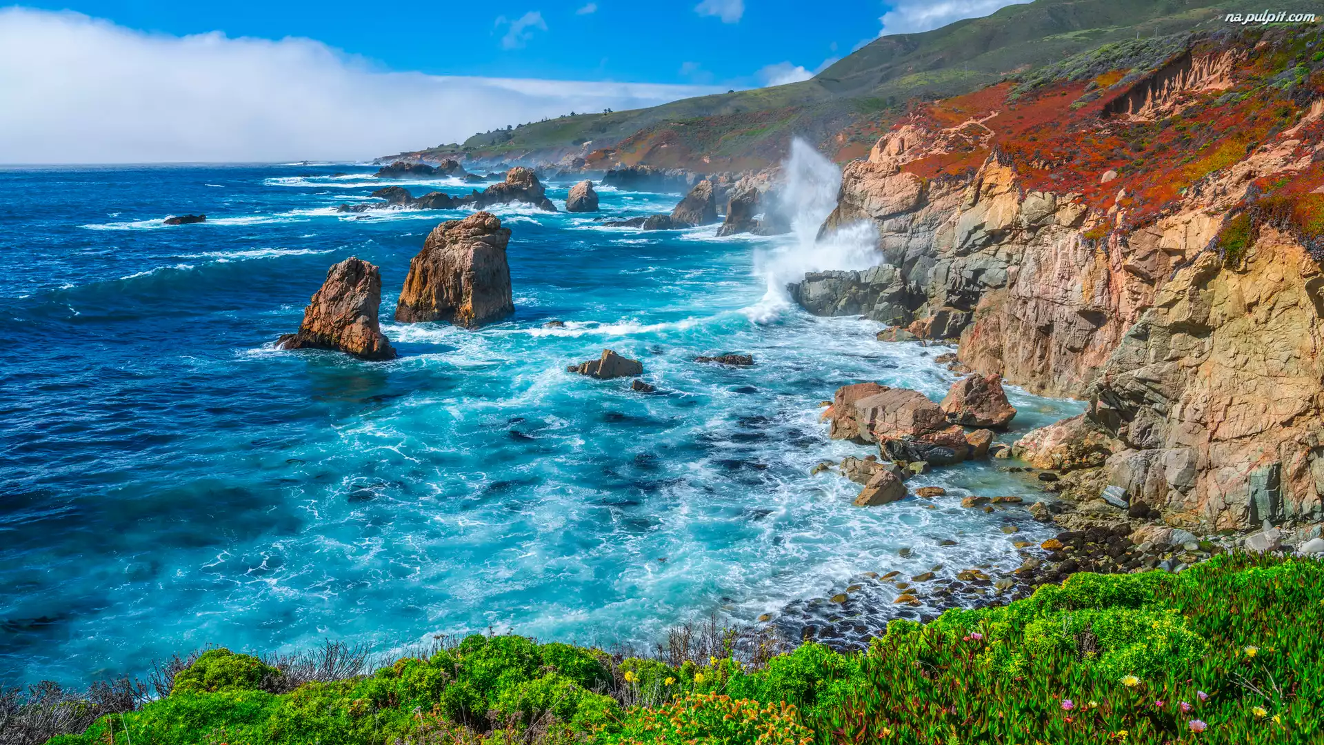Skały, Morze, Wybrzeże, Stany Zjednoczone, Kalifornia, Big Sur Beach, Zatoka Na Pulpit