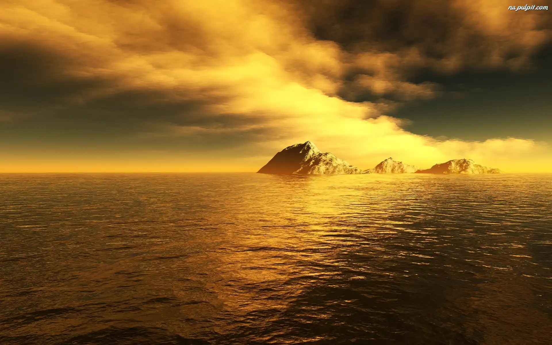 Skały, Zachód, Morze, Chmury, Słońca Na Pulpit