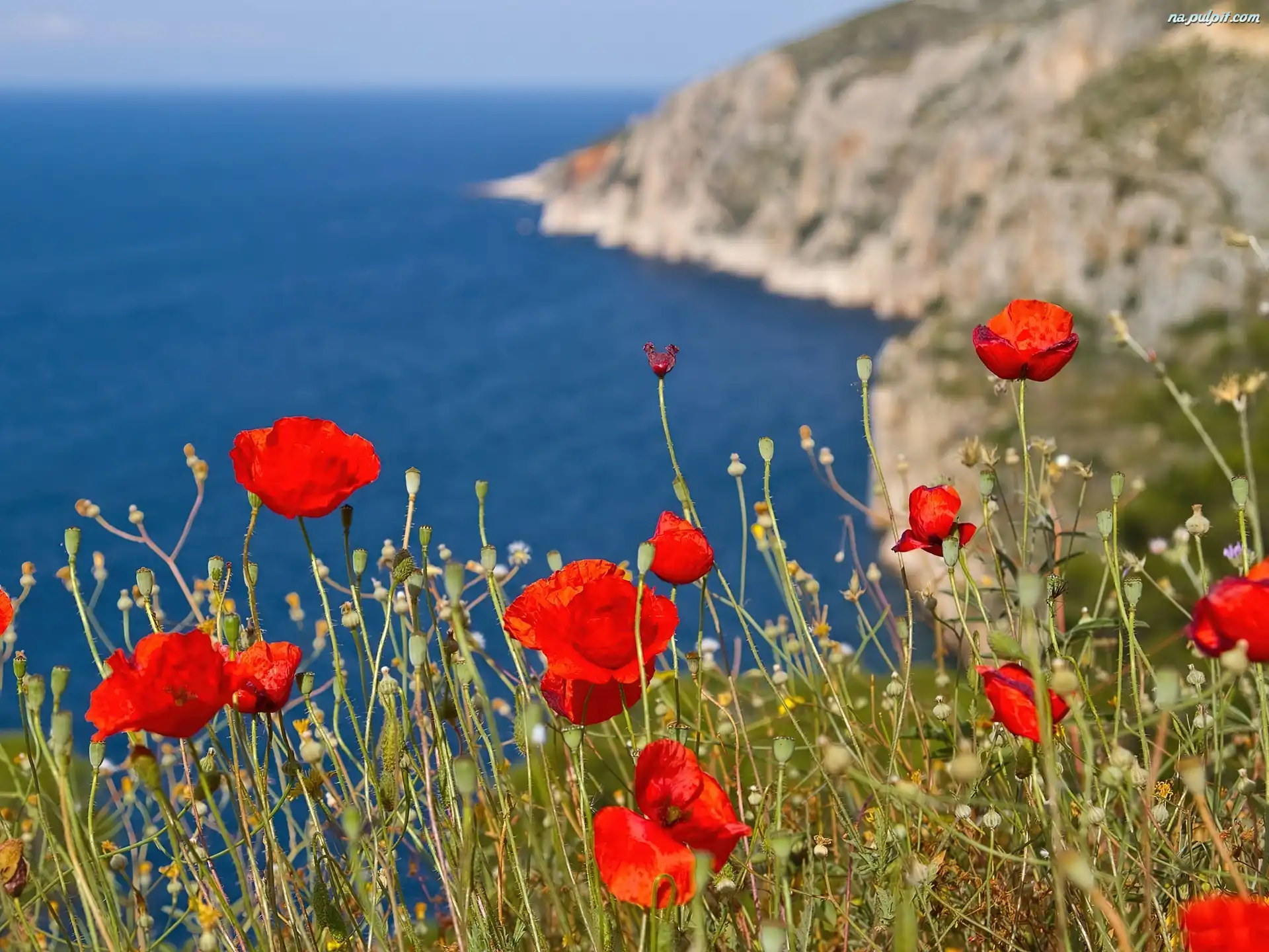 Skały, Maki, Czerwone, Morze Na Pulpit