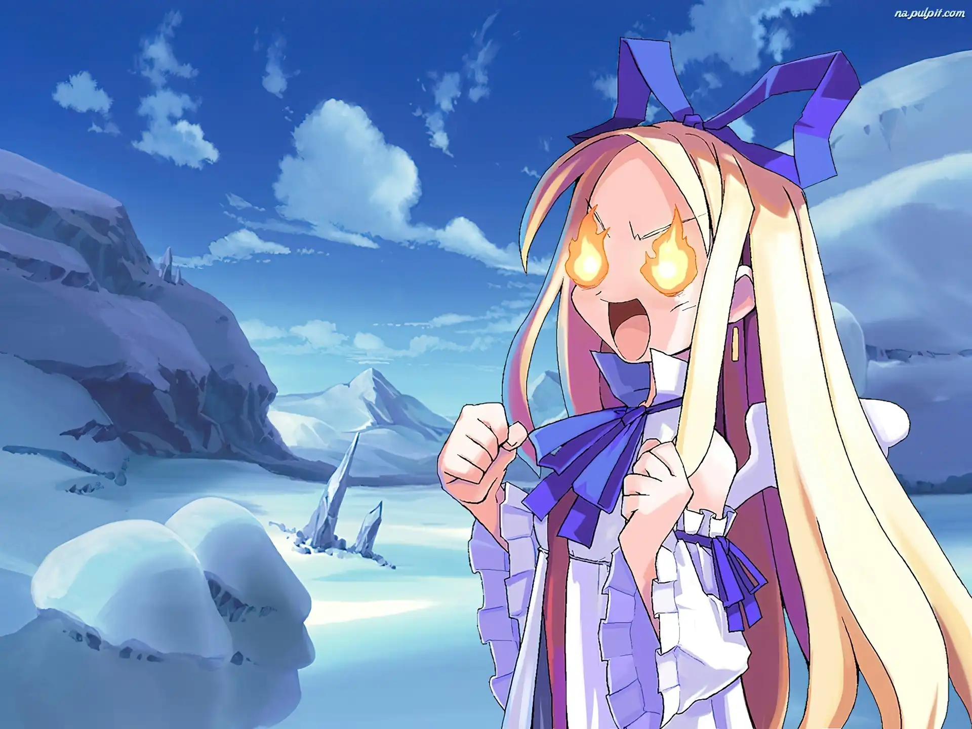 skały, zima, płomienie, Disgaea, dziewczyna Na Pulpit