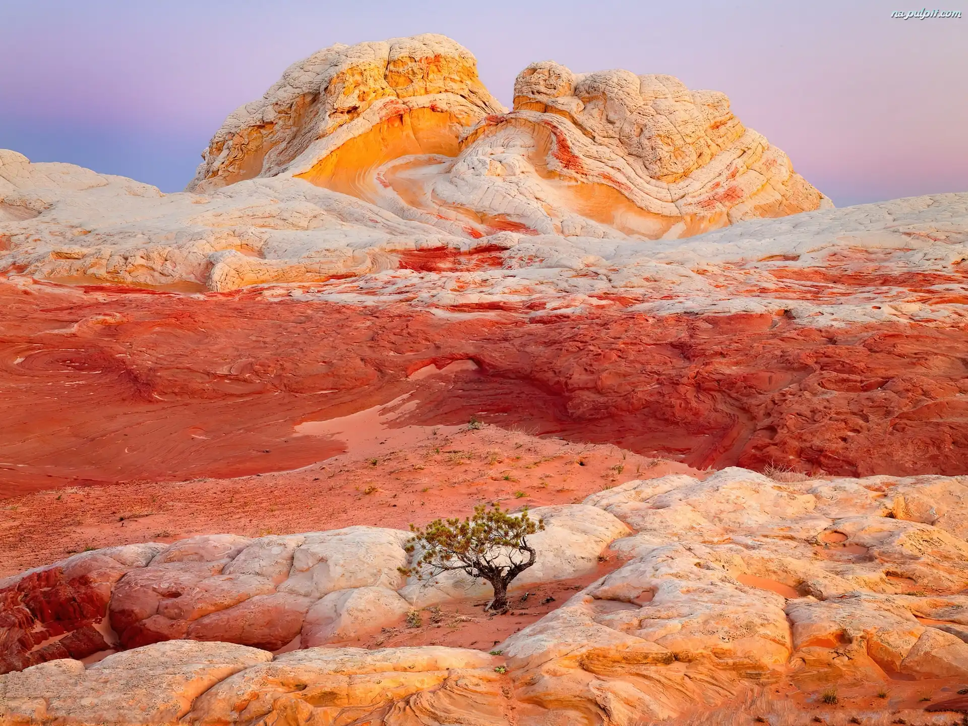 Skały, Pomarańczowo, Drzewko, Czerwone Na Pulpit