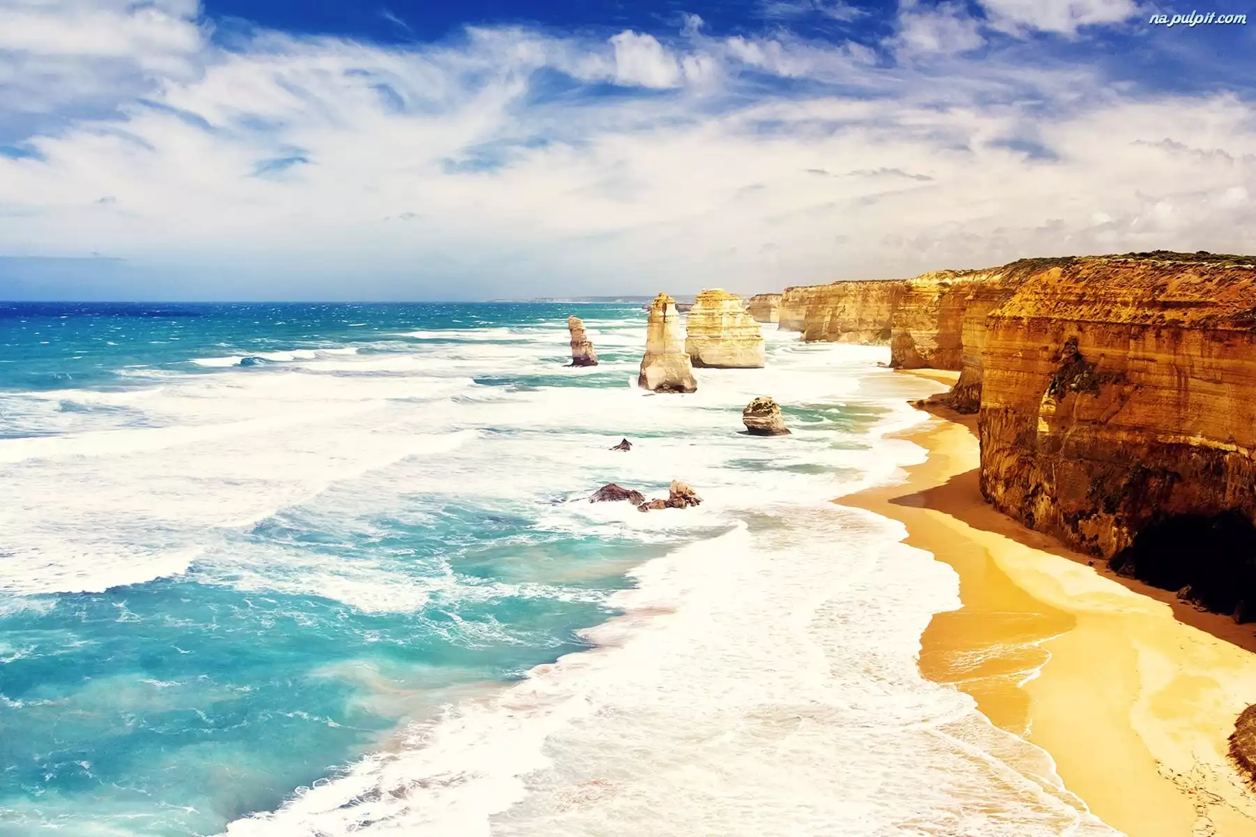 Skały, Plaża, Fale, Niebo Na Pulpit