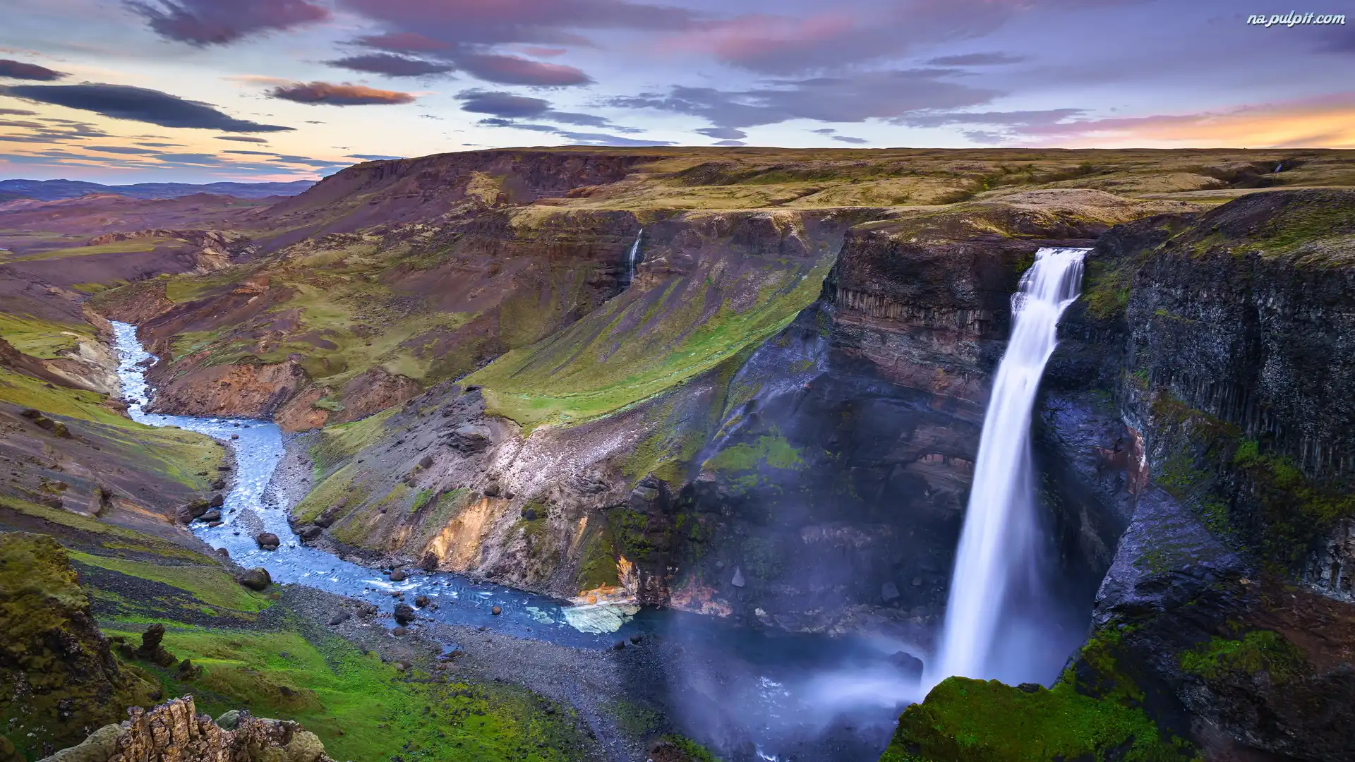 Islandia, Haifoss Falls, Góry, Rzeka Fossa, Wąwóz, Wodospad, Skały Na Pulpit