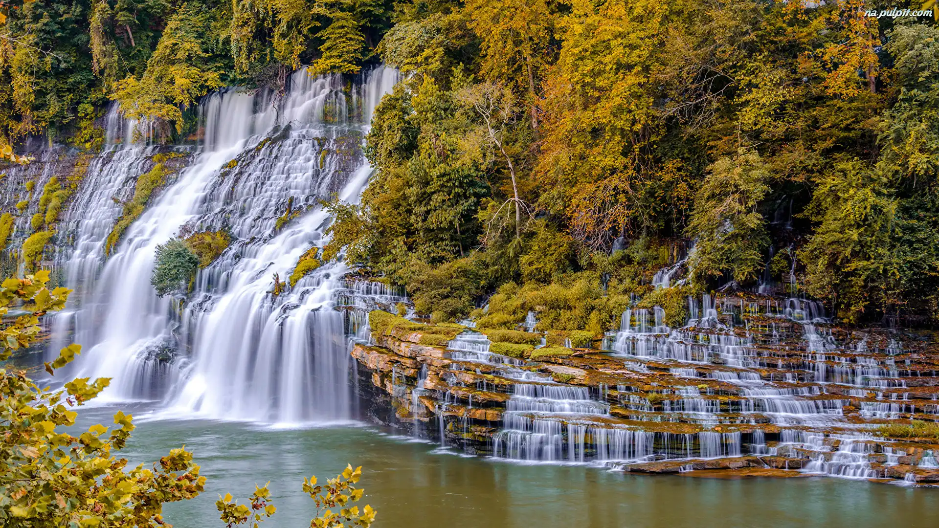 Skały, Park stanowy Rock Island State Park, Krzewy, Stany Zjednoczone, Stan Tennessee, Wodospad Twin Falls, Drzewa Na Pulpit |