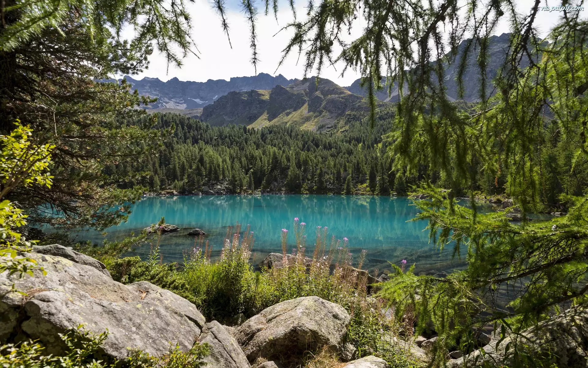Skały, Jezioro, Góry, Drzewa Na Pulpit