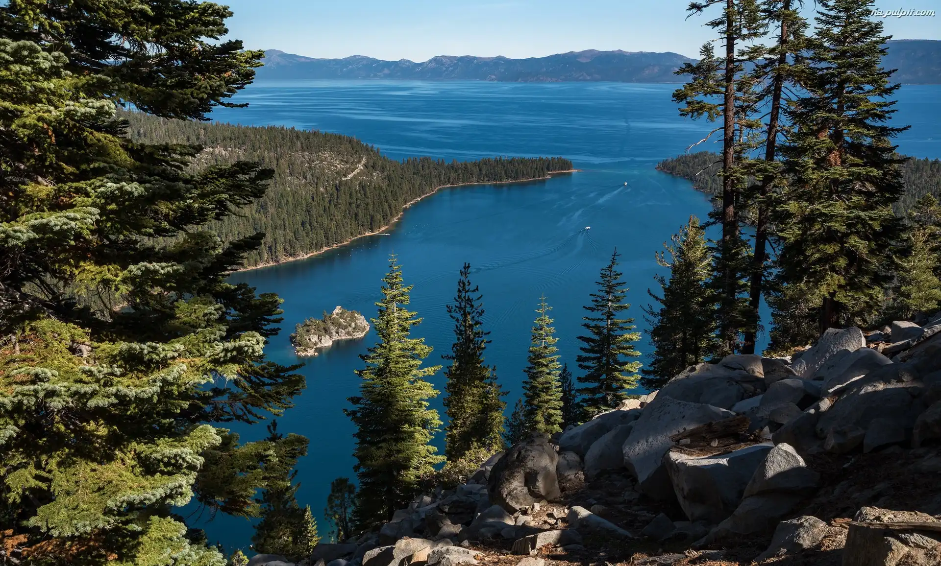 Skały, Zielone, Jezioro, Góry, Drzewa Na Pulpit