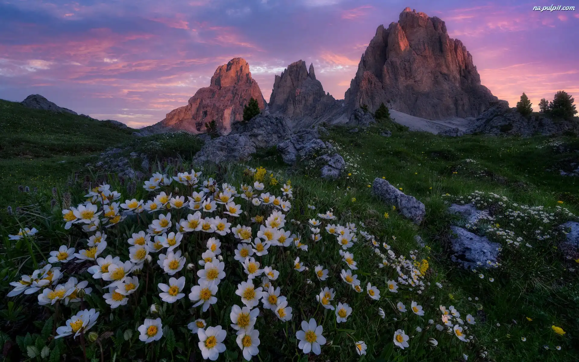 Góry, Łąka, Kwiaty, Skały Na Pulpit