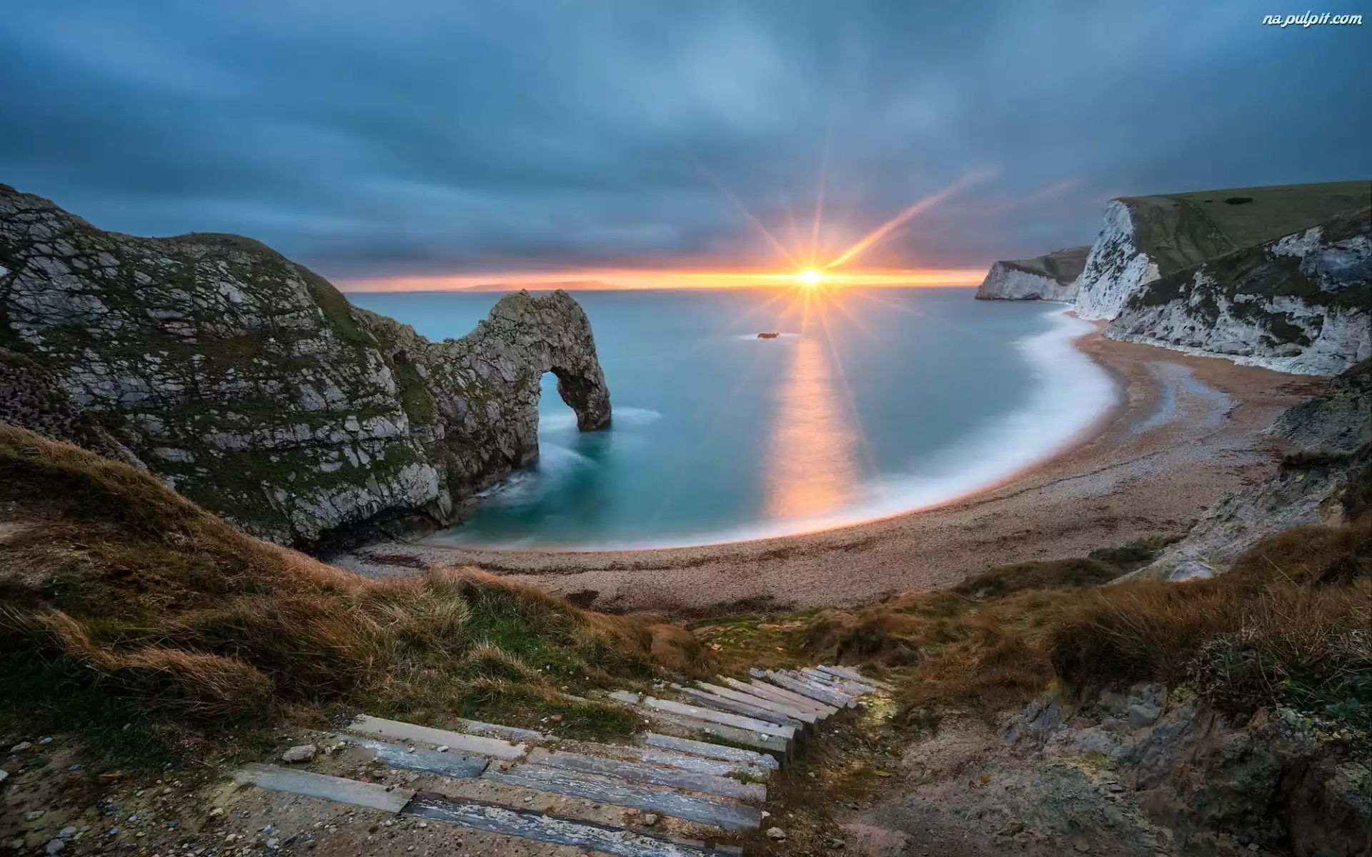 Plaża, Morze, Schody, Anglia, Durdle Door, Skały, Hrabstwo Dorset, Wybrzeże Jurajskie Na Pulpit