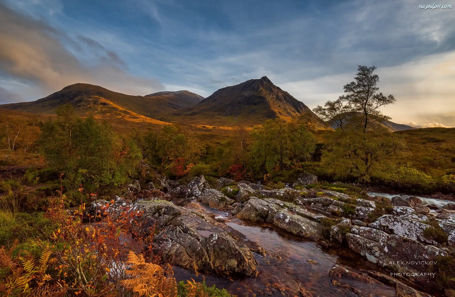 Skały, Drzewa, Krzewy, Góry, Jesień, Strumień Na Pulpit