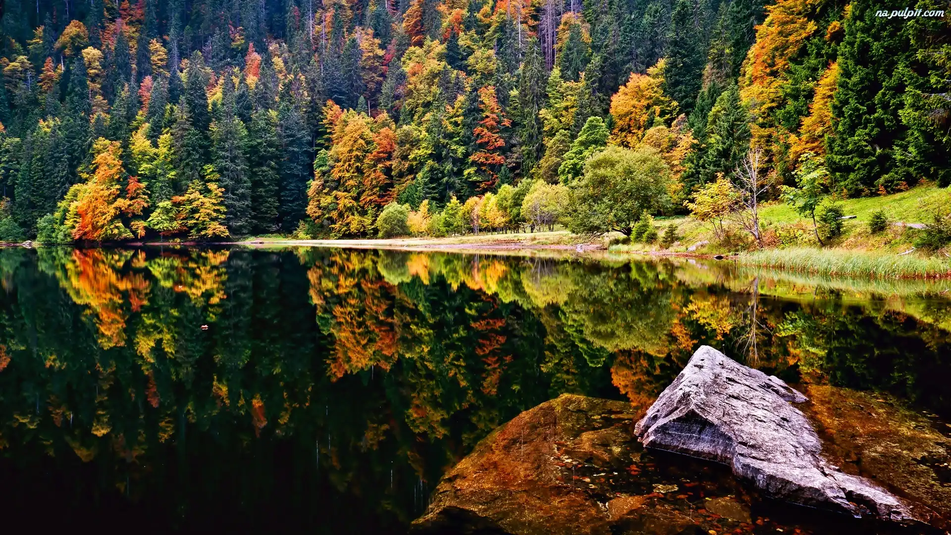 Skały, Las, Jesień, Jezioro Na Pulpit