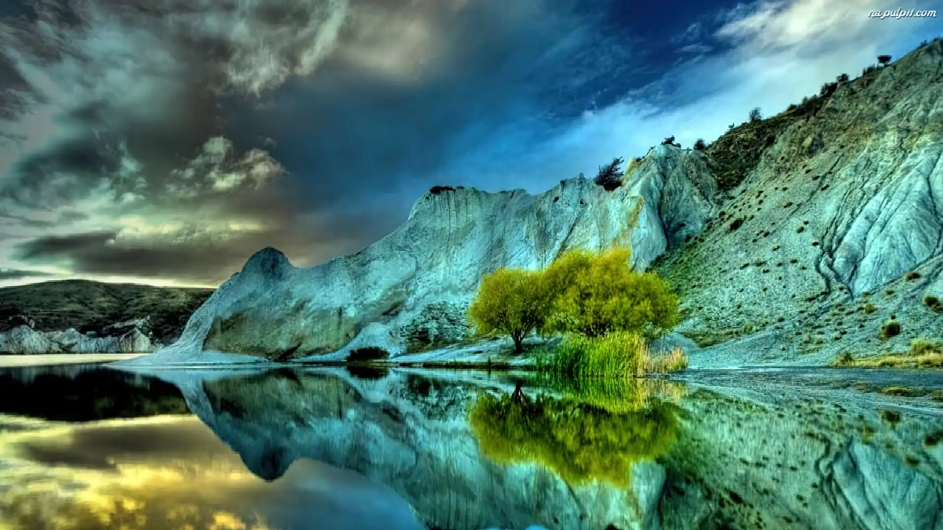Skały, Odbicie, Jezioro, Lustrzane Na Pulpit