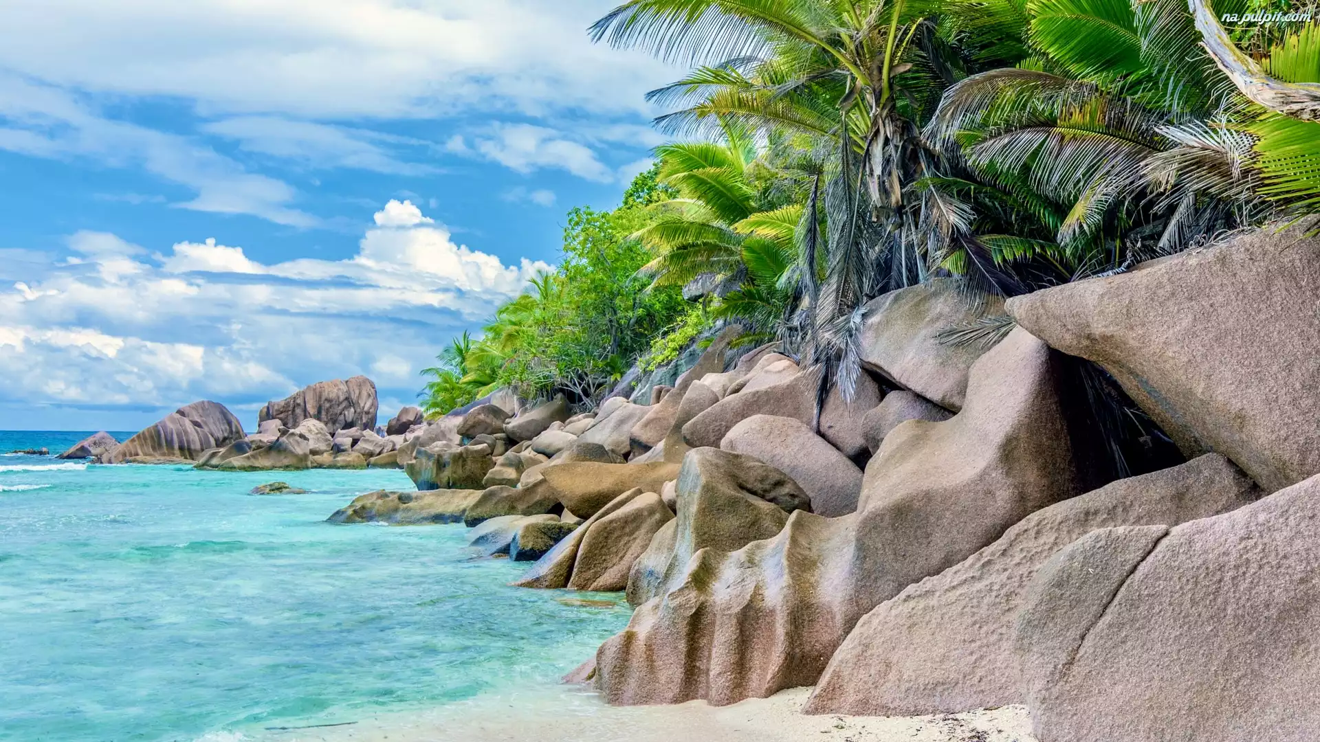 Skały, Seszele, Plaża, Anse Cocos, Wyspa La Digue, Palmy Na Pulpit
