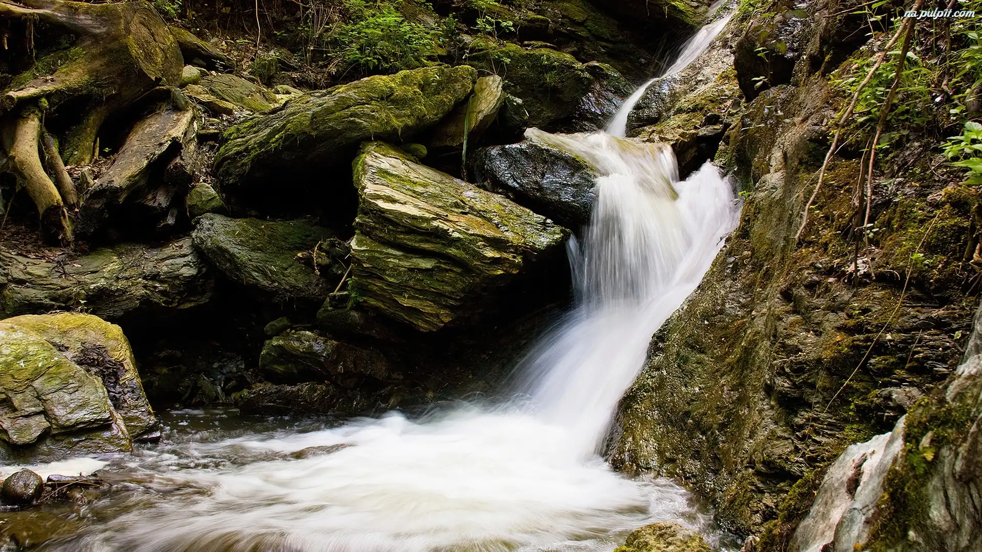 Skały, Strumyk, Leśny, Wodospad Na Pulpit