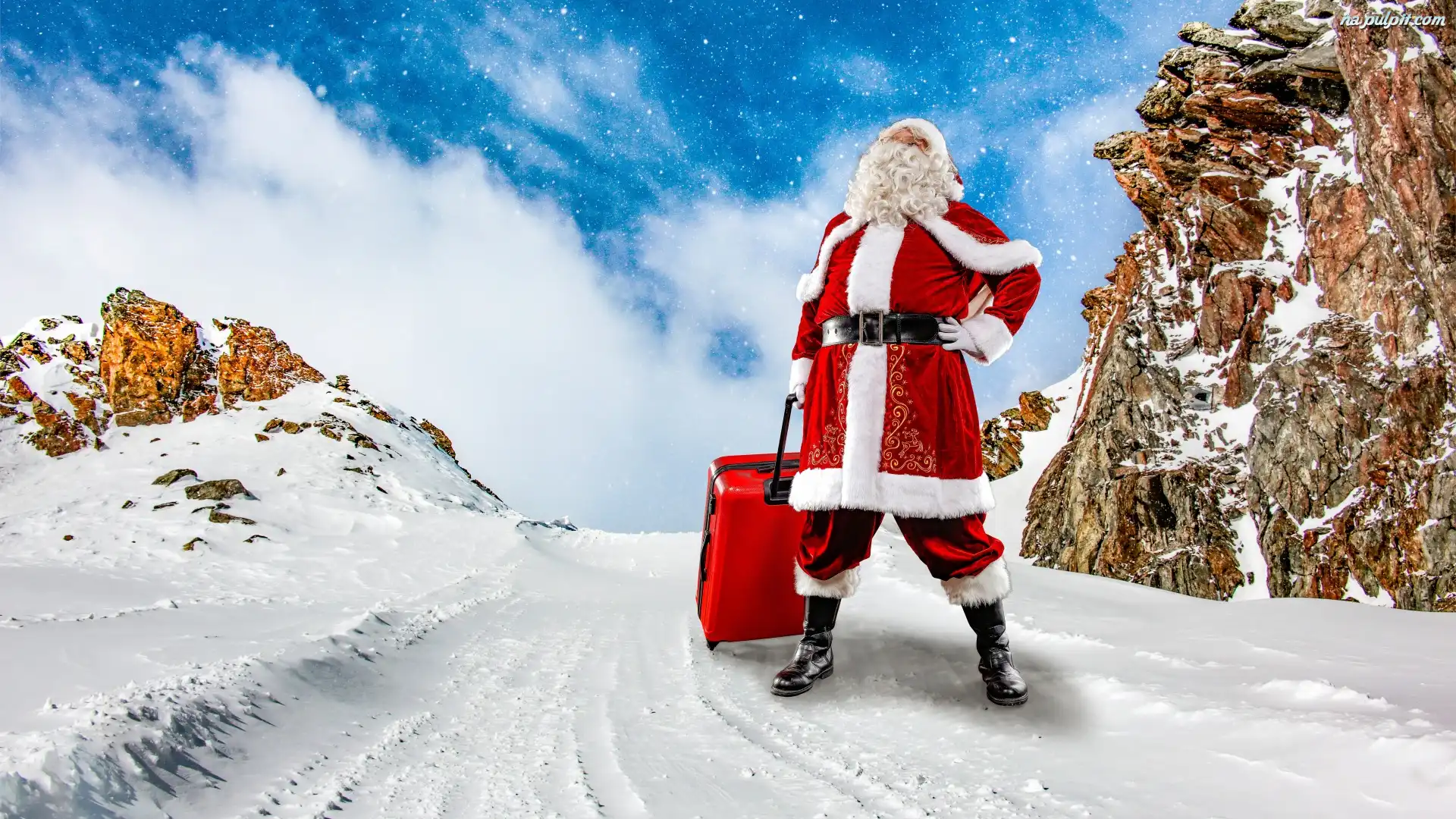 Skały, Zima, Walizka, Mikołaj, Droga Na Pulpit