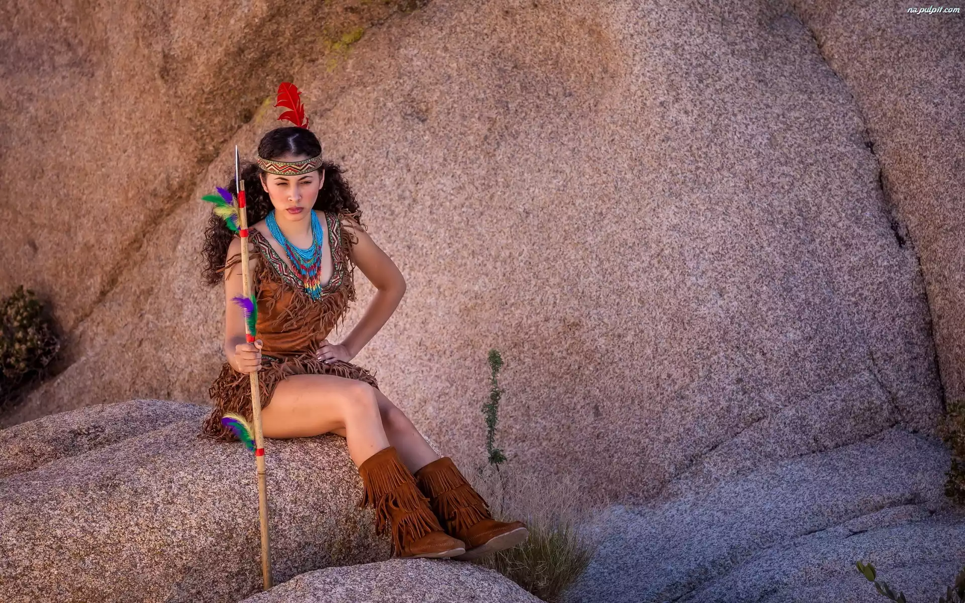 Skały, Indianka, Modelka, Broń