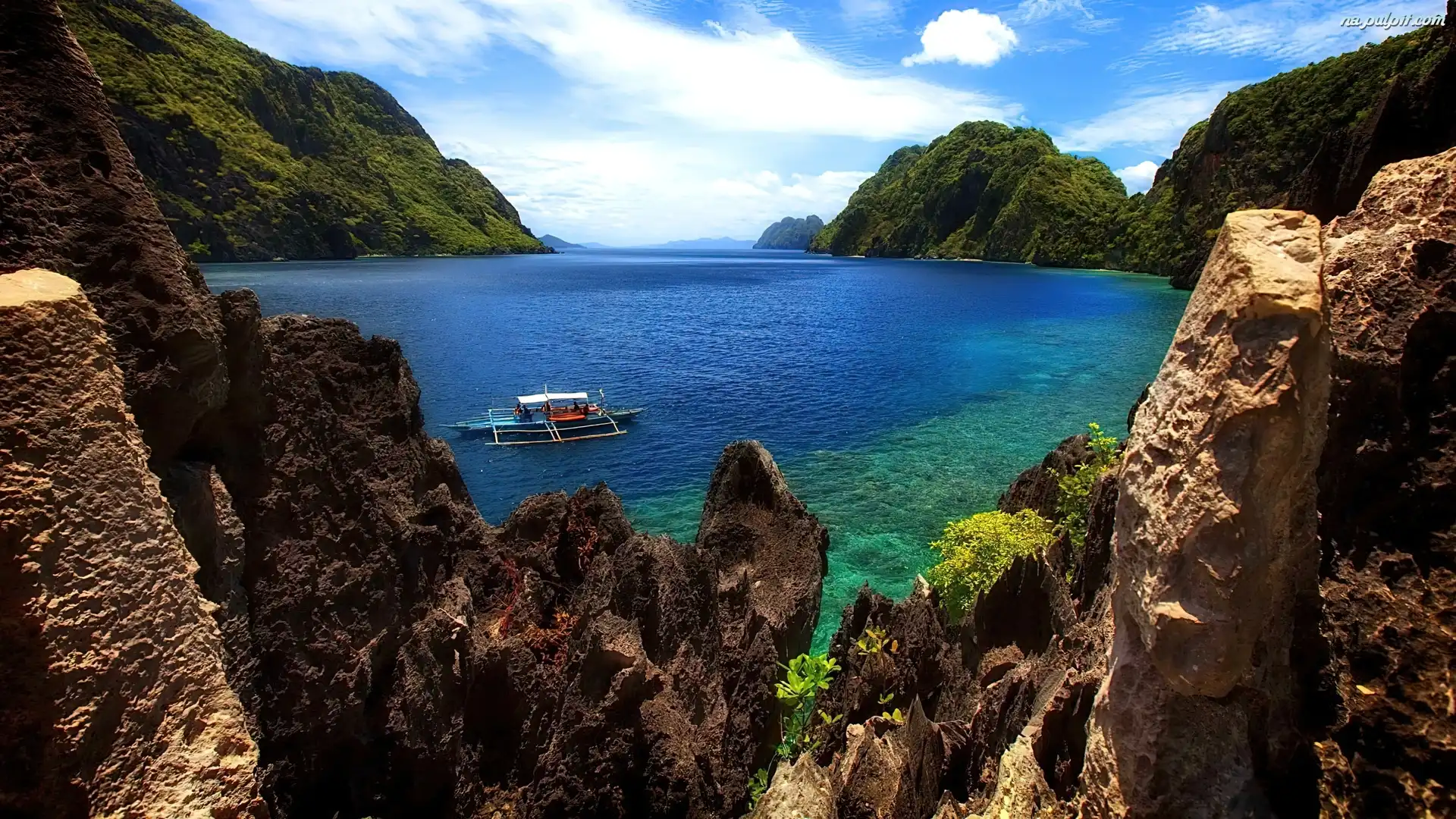 Łódz, Morze, Skały, Wybrzeże Na Pulpit