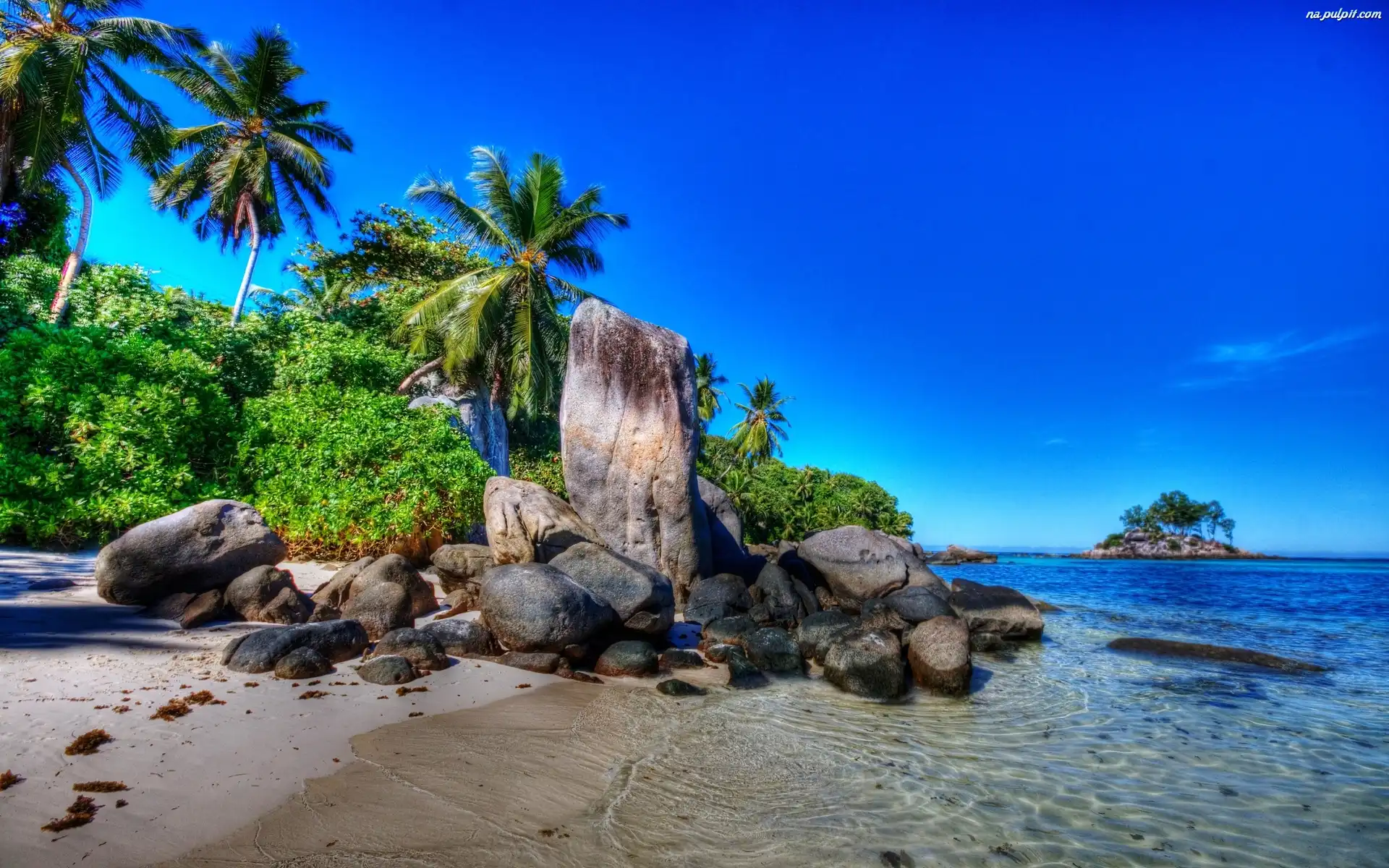 Skały, Plaża, Morze, Palmy Na Pulpit