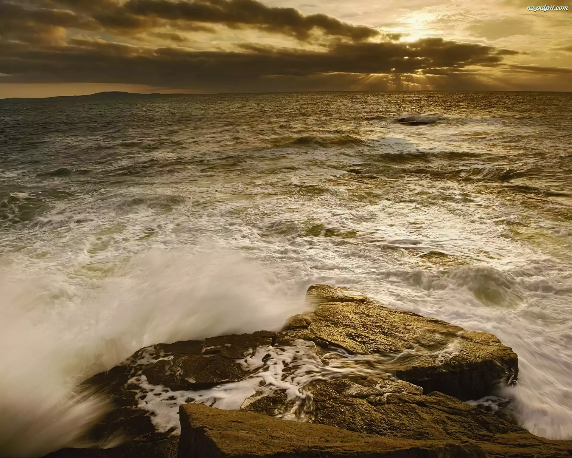 Skały, Promienie, Morze, Słońca Na Pulpit