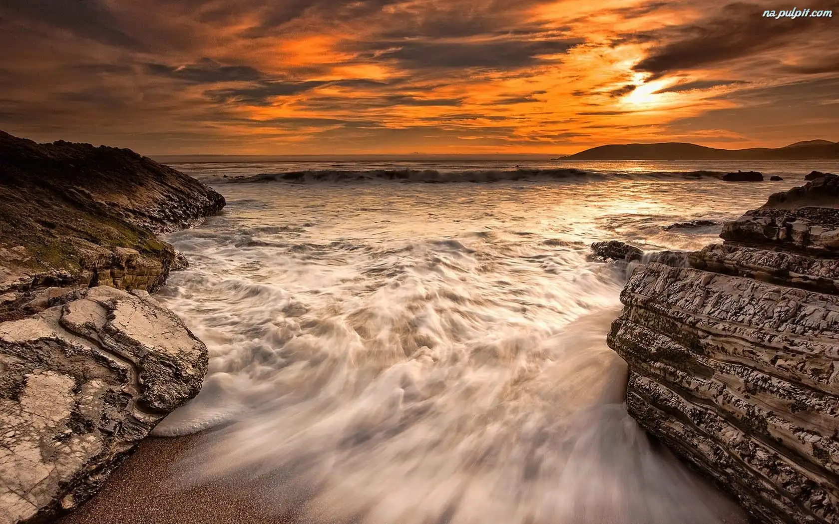 Skały, Zachód Słońca, Morze, Fale Na Pulpit