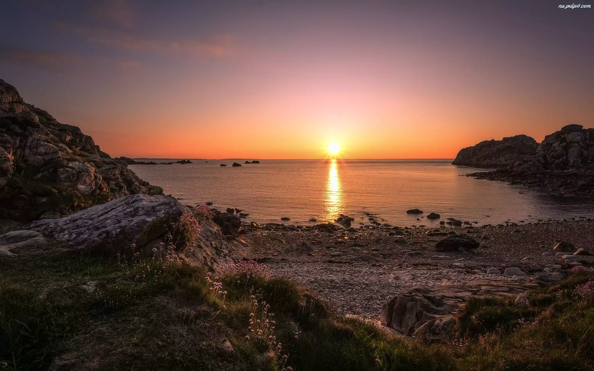 Skały, Zachód słońca, Morze, Kamienie Na Pulpit