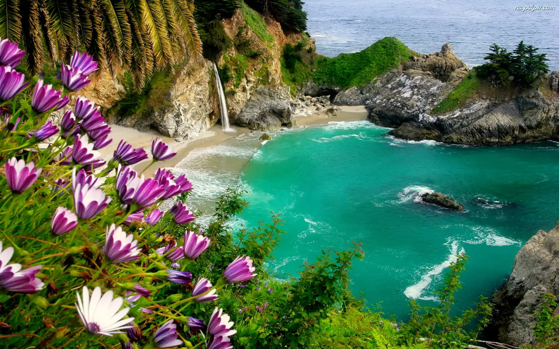 Skały, Zatoka, Morze, Kwiaty Na Pulpit