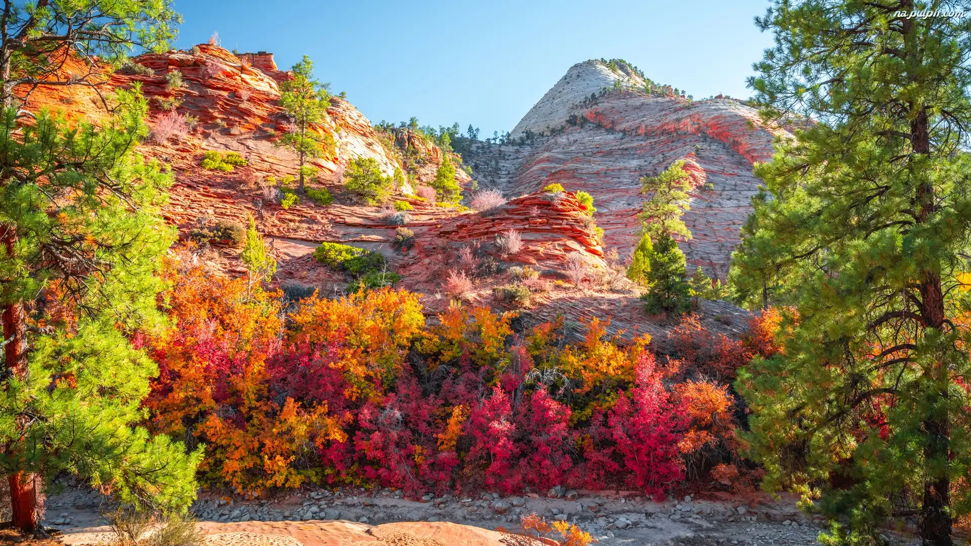 Roślinność, Park Narodowy Zion, Stan Utah, Stany Zjednoczone, Skały