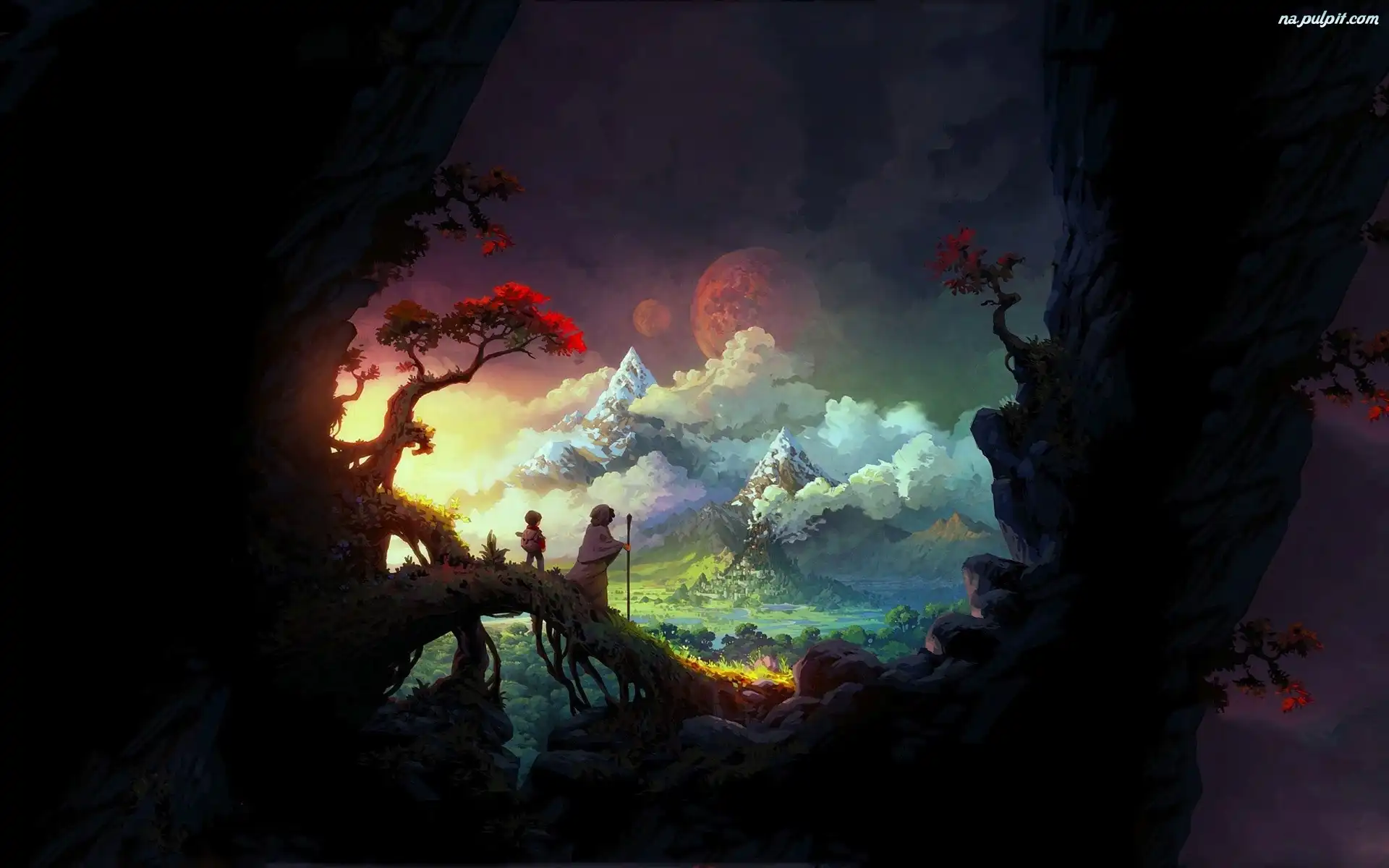 Obraz, Skały, Chłopiec, Wędrowiec, Planety, Góry, Oraz