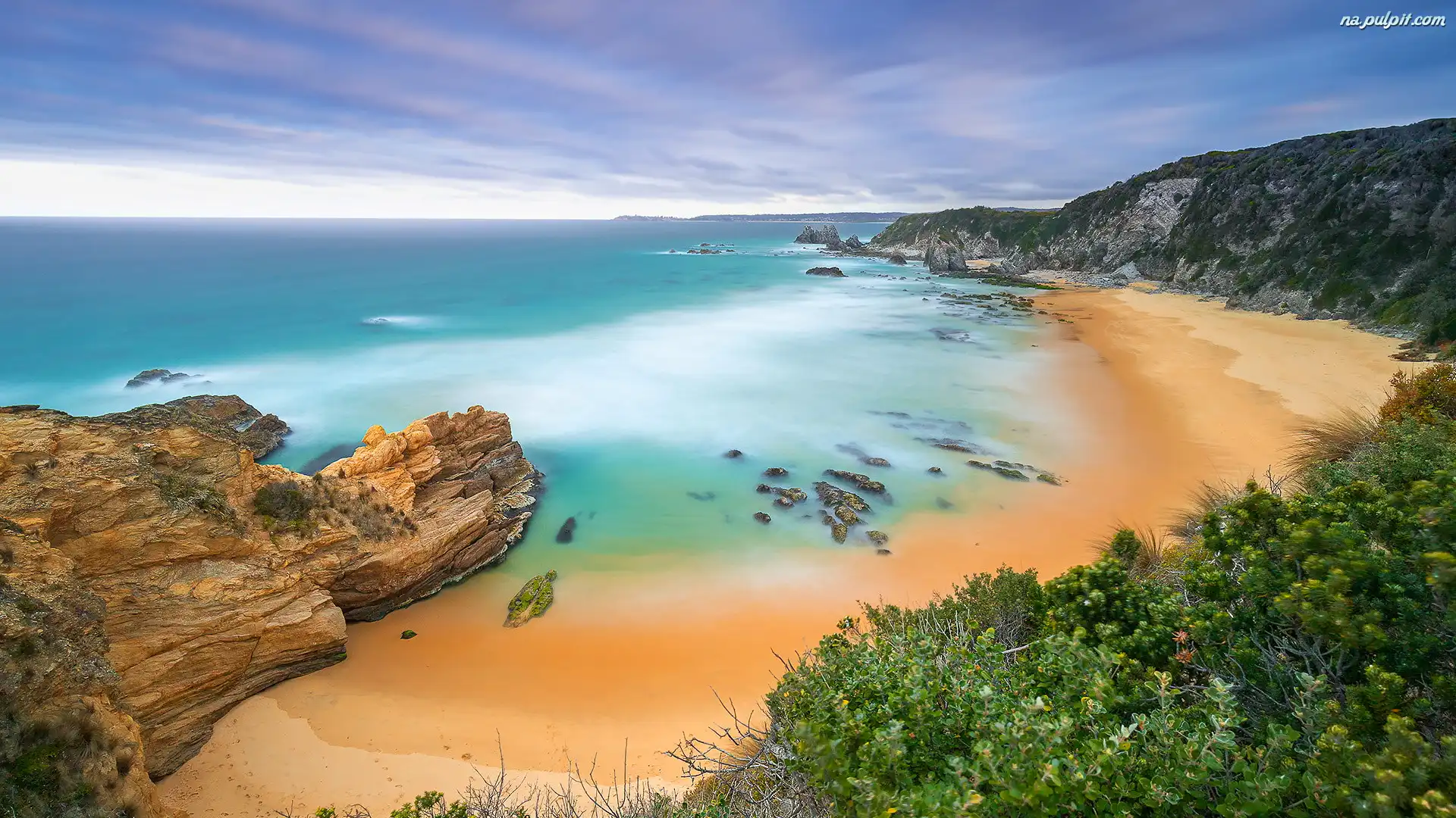 Morze, Nowa Południowa Walia, Australia, Plaża, Wybrzeże Sapphire, Skały Na Pulpit