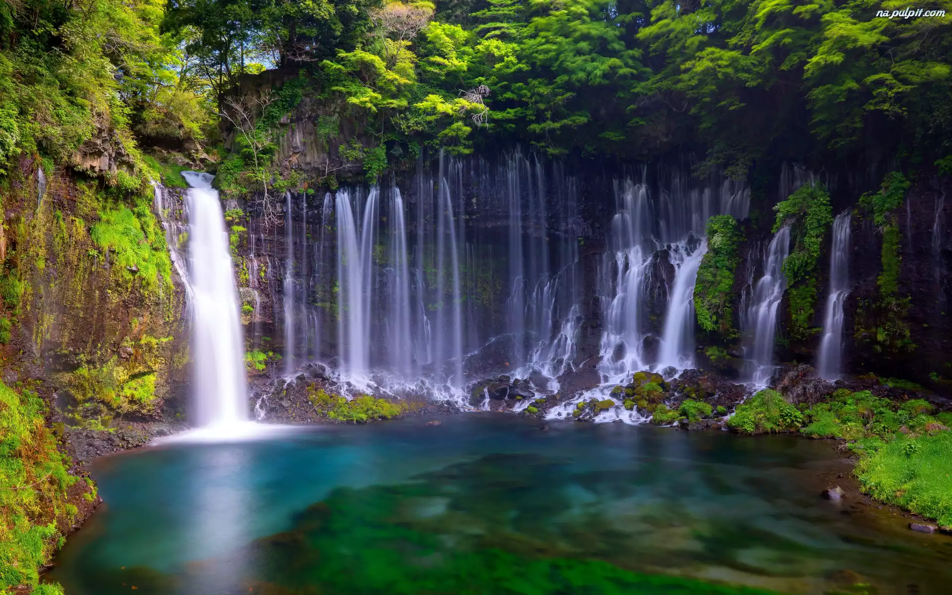 Fujinomiya, Wodospad Shiraito, Skały, Japonia, Rośliny Na Pulpit