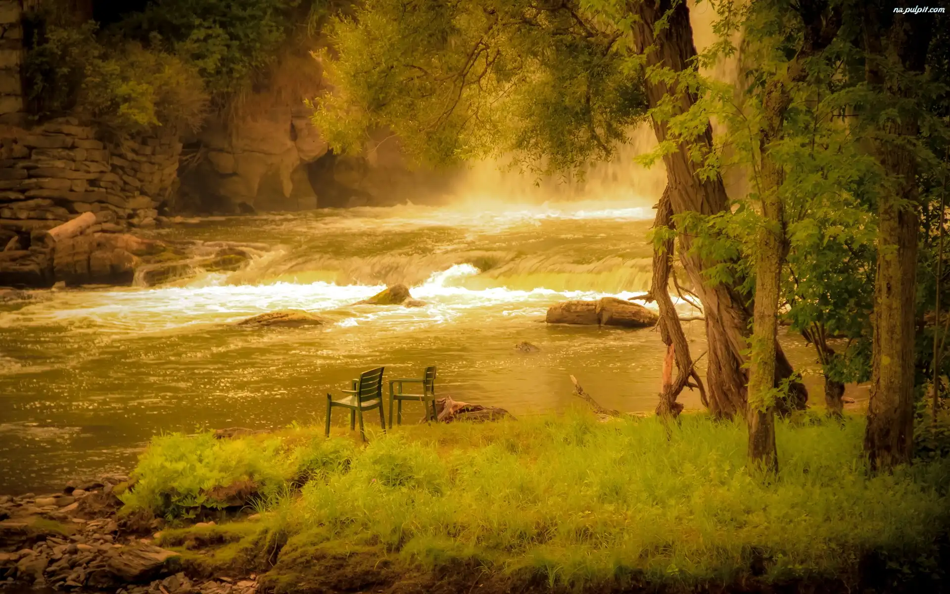 Las, Rzeka, Jesień, Kamienie Las, Zakręcone, Młode, Drzewo Plaża, Skały Morze, Tęcza, Skała Wodospad, Las Góry, Chiny, Rzeka Samolotu, Widok, Las, Z dwie góry, Morze Skały Wodospad Góry, Rzeki Górskie, Oświetlone, Szczyty Skała, Morze Rzeka, Góry Las, Skała, Góry, Lato, Jezioro